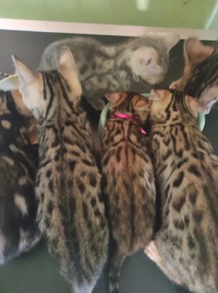 Prodám čistokrevná bengálská koťata bez PP.Narozena 9.8.2024.Pravidelně odčervená,očkovaná a plně socializovaná.Zvyklá na pejska.Již k odběru.