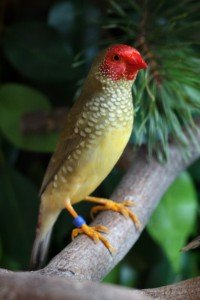 U tohoto druhu je dobře patrný pohlavní dimorfismus, takže ani pro začínajícího chovatele není těžké pohlaví určit. Samci mají větší červenou masku a už v útlém věku se snaží zpívat. Svůj vrzavý zpěv si procvičují téměř celý den. Maska samiček je malá (převážně na čele a okolo zobáku až k očím) a samozřejmě nezpívají. Mladí ptáci jsou celkově olivově zelenohnědí s černým zobákem. Při přepeřování se začíná vybarvovat maska a perličky na prsou. Jak ptáci vypadají popisovat nebudu, protože čtenáři to beztak moc nedá. Lepší je udělat si úsudek z přiložených fotografií.