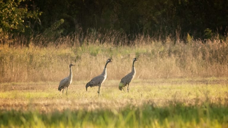 Jeřábi popelaví s mládětem na Josefovských loukách.