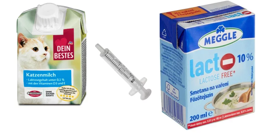 Mě se nejvíce osvědčilo: mléko pro kočky, které smíchám s bezlaktózovou smetanou (v poměru 2:1) a přidám na špičku nože Glukopur. Celé to ohřeji v malém hrníčku a podávám vlažné (zkouším na vlastní kůži ze spodu zápěstí).