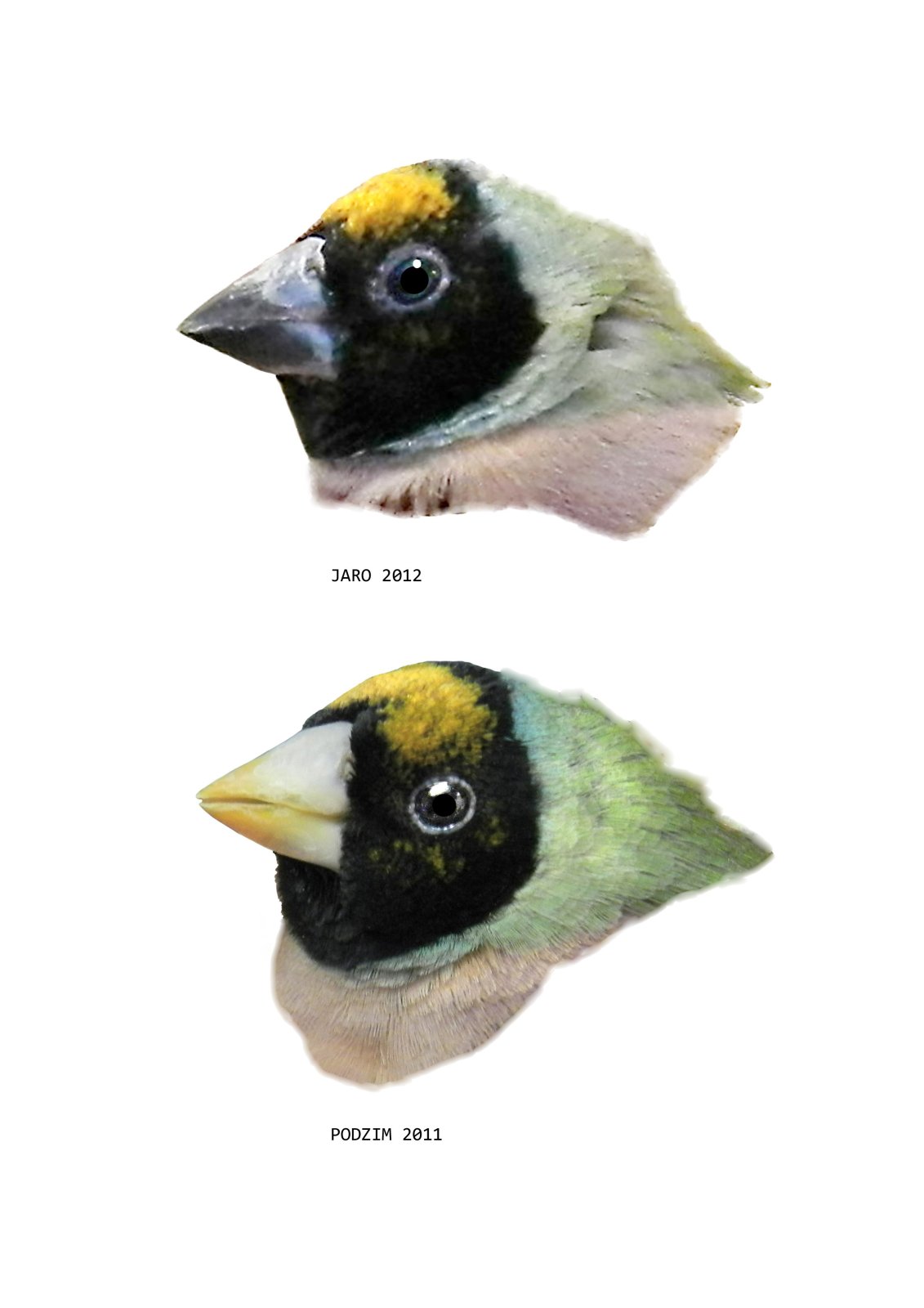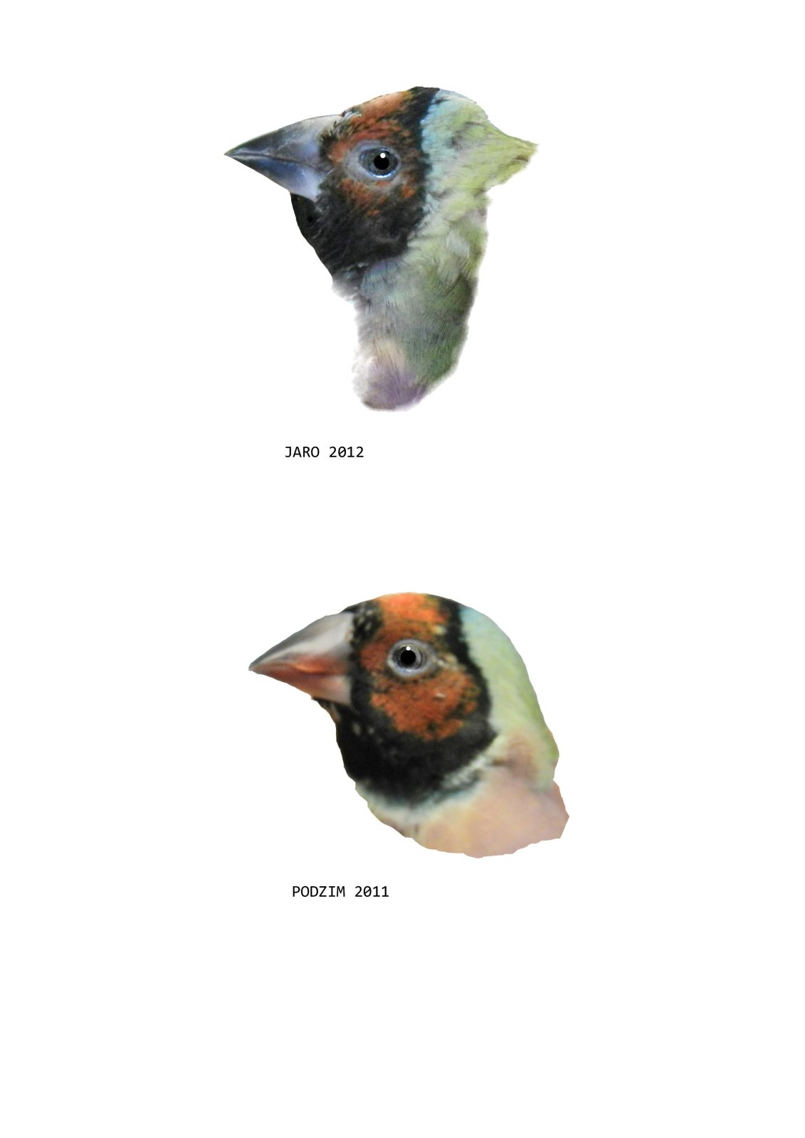 Amada Gouldové žlutohlavá - stejný pták v různém časovém období