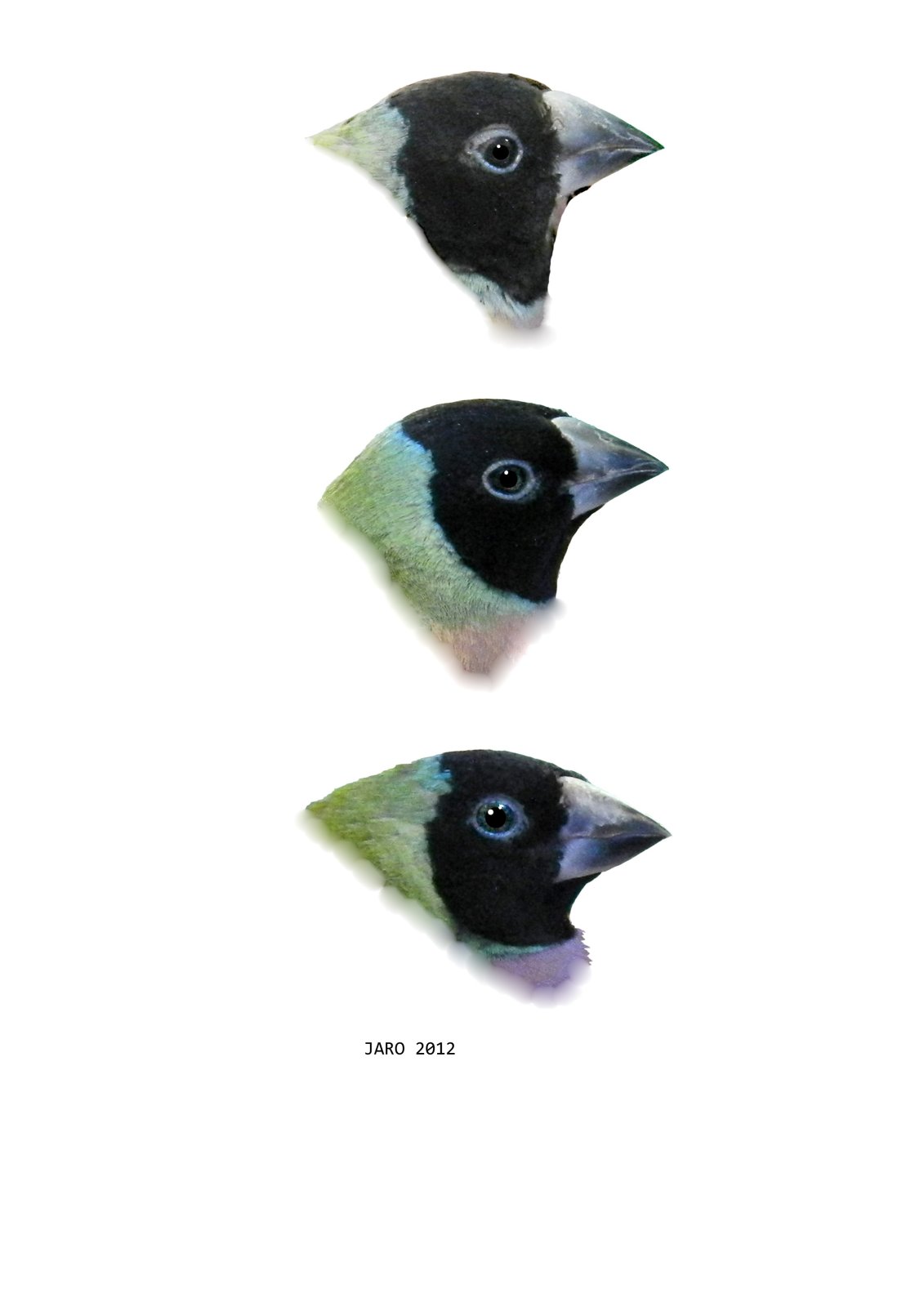 Před deseti léty jsem fotografoval hodně hlav a zobáků „Guld“ a hodlal stále pokračovat. Nejsme ovšem pány svého osudu. Bratr se odstěhoval, já ztratil přístup k pravidelné dokumentaci. A ovšem, nedovedl si tenkrát představit, jak to všechno uložit tak, abych se v tom vyznal i po deseti létech. Jenom vím, že třeba u jednoho kusu byla babička i dědeček červenohlaví ptáci, rovněž tak otec i matka, aby jedna z dcer z této linie byla půlákem a to černohlavá a žlutohlavá. Chtělo to tuto linii sledovat dál, leč nešlo to.