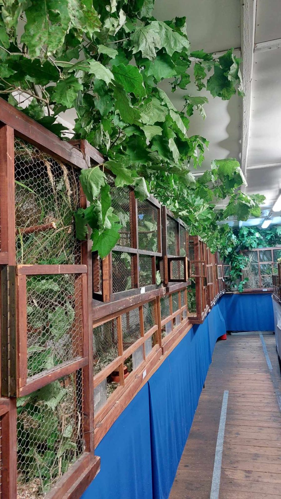 Celou výstavu i klece zdobíme přírodními větvemi, travinami, pařezy a větvemi tak, aby se líbilo návštěvníkům a ptáci měli možnost se i trochu schovat a měli pocit bezpečí.