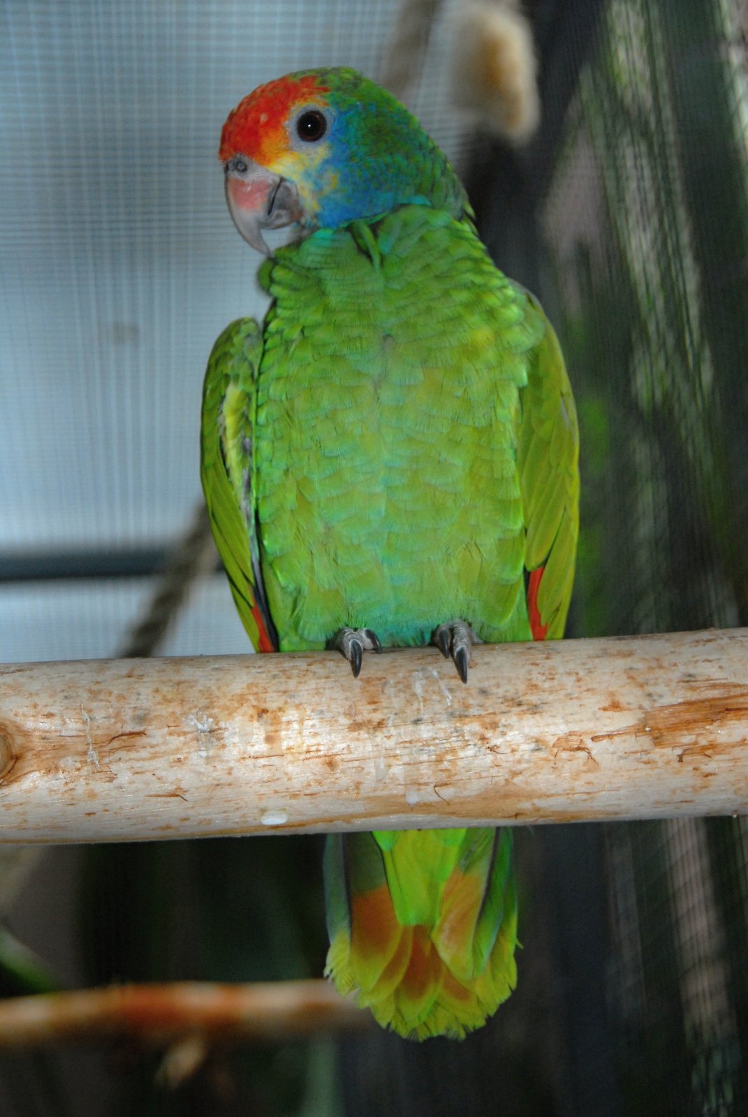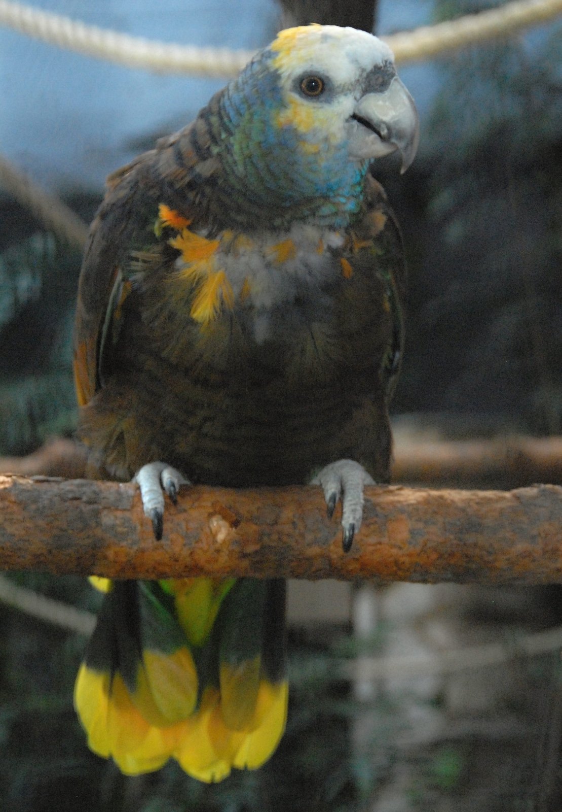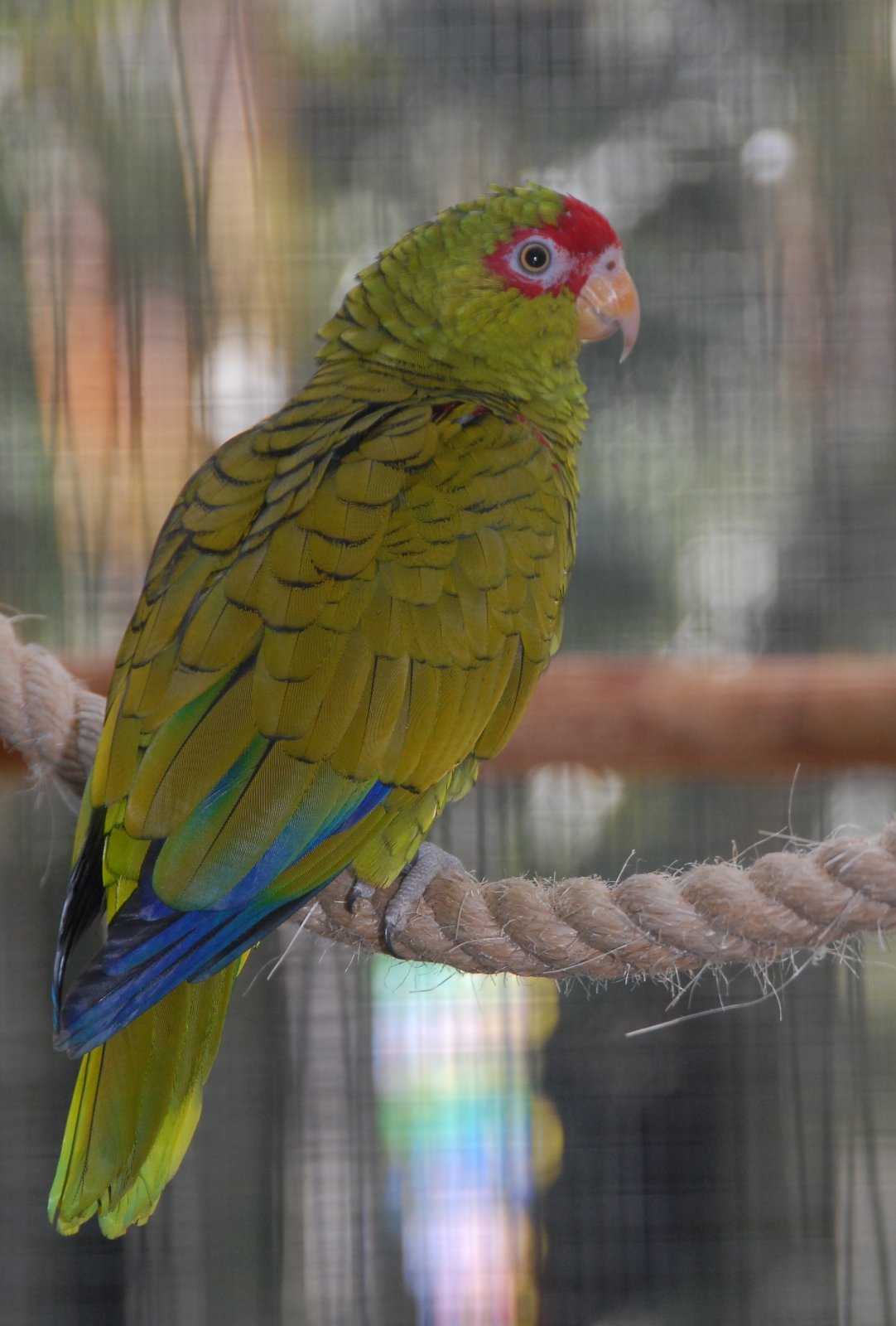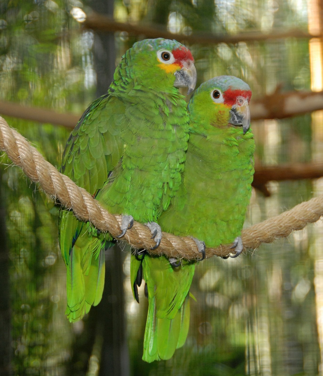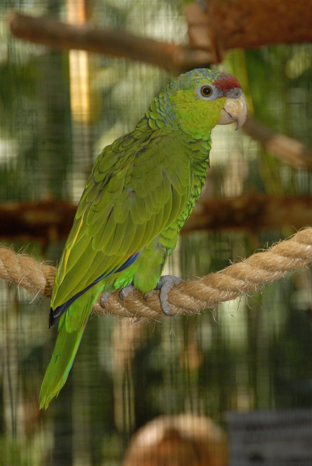 I ve velkých voliérách ptáci létají méně a mnohem raději šplhají. Kromě větví o různé tloušťce jim zavěšujeme silná konopná lana, na kterých lezou, houpají se a hrají si. Mnoho času tráví okusováním čerstvých větví, které pravidelně měníme.