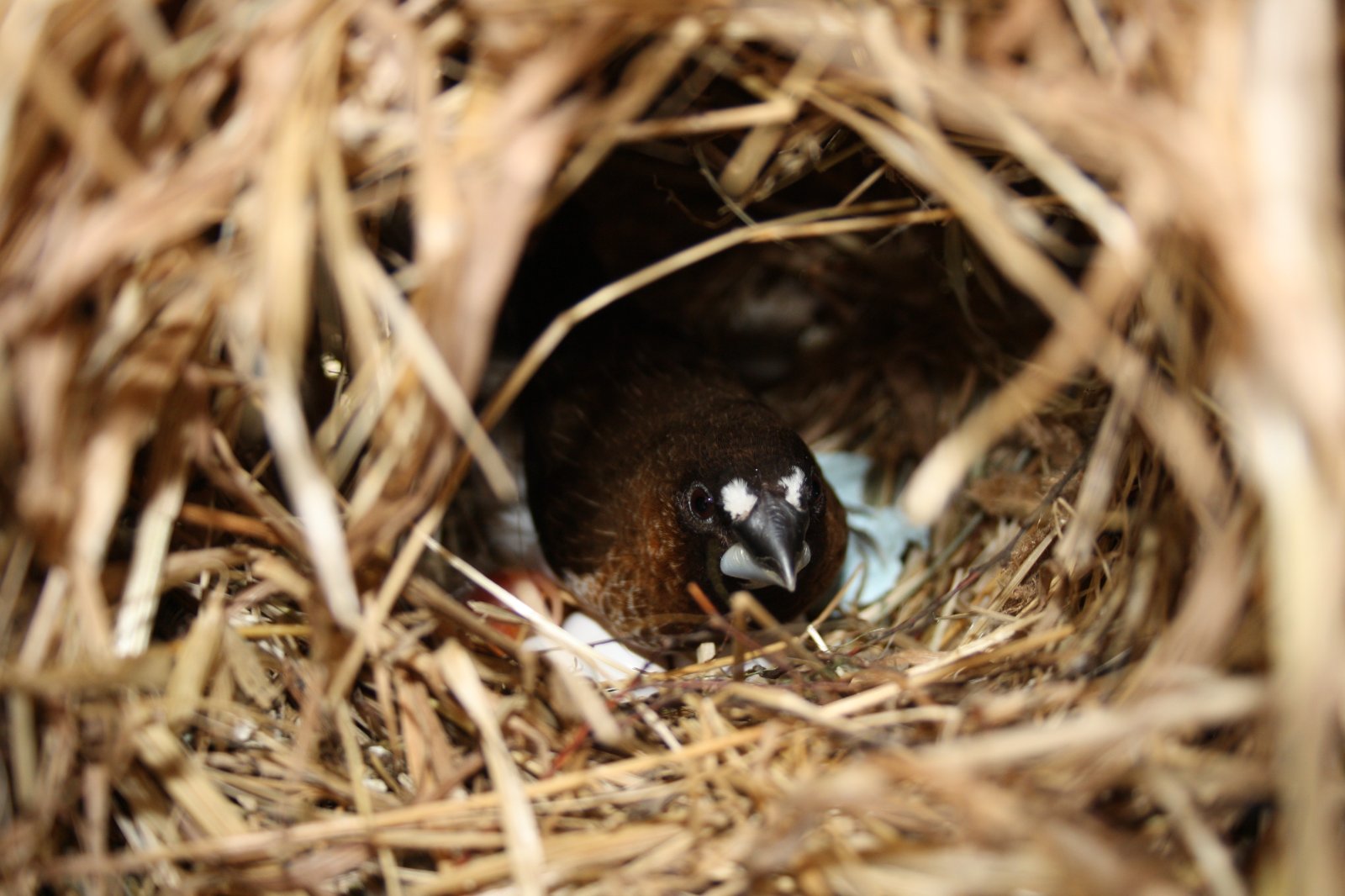 Pokud do rohu klece zavěsíme několik hustých větviček, mohou začít tam, raději však volí obyčejnou polobudku nebo budku s větším vletovým otvorem. U polobudky vyřízneme na vstupní čelní stěně celou vrchní třetinu. Samotné hnízdo je neurovnaná kulovitá nebo hruškovitá stavba, která vyplní celý vnitřek budky. Oba rodiče ho staví z materiálu, který jim poskytneme. Tím by měla být jemnější suchá tráva, nastříhaná na kousky asi deset až patnáct centimetrů dlouhé (s většími by drobní ptáčci mohli mít v malé kleci problémy), mech, psí nebo kočičí srst, kousky papíru, hadříků apod. Nikdy nedáváme vatu, do které se ptákům snadno zamotají nohy a často tímto způsobem dochází ke zraněním.