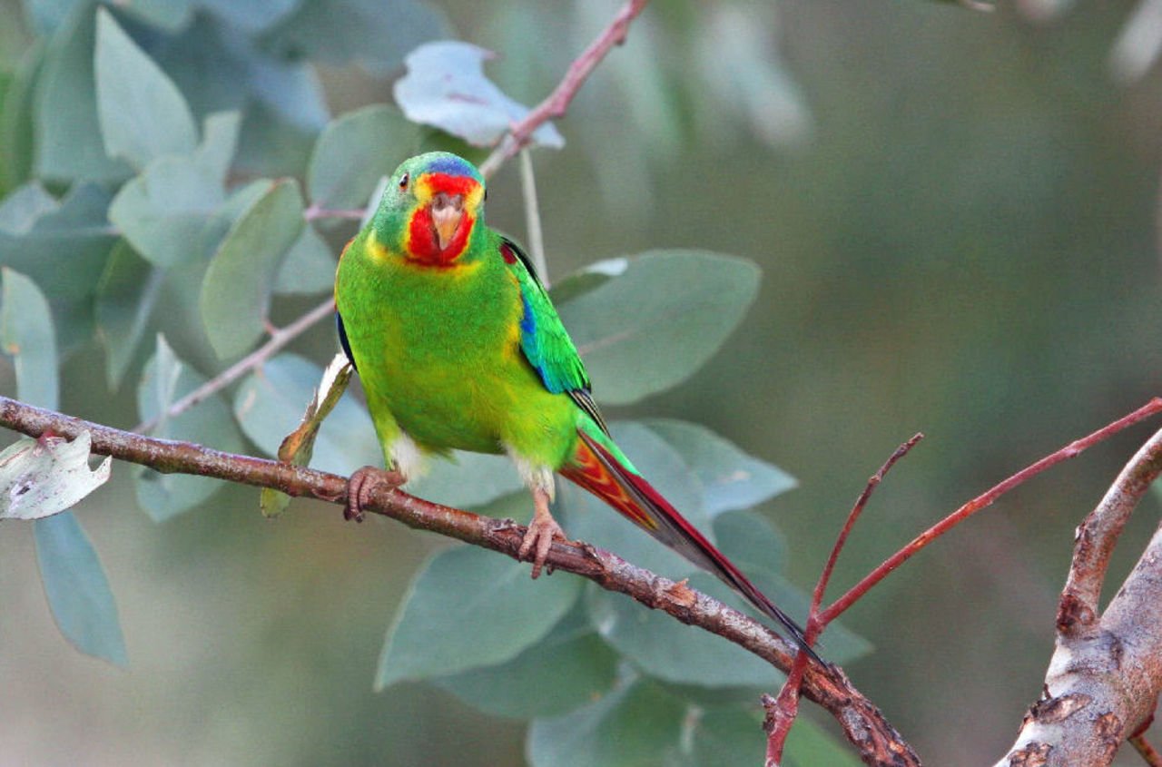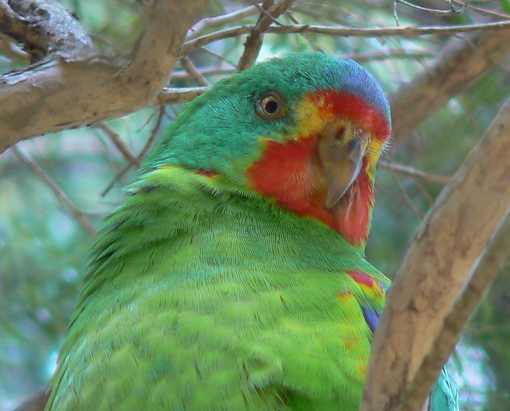 Na hnízdišti se shromažďují na rozkvetlých eukalyptech, kde hodují na nektaru a pyly. Vedle toho hledají hmyz a jeho larvy, semena, bobule a různé plody. Hlavně v této době jsou velmi společenští. Běžně hnízdí n a jednom stromě více párů, v každé dutině eukalyptu od 7 do 20 m výšky. Na zem slétají výjimečně, pouze na pití a koupání.