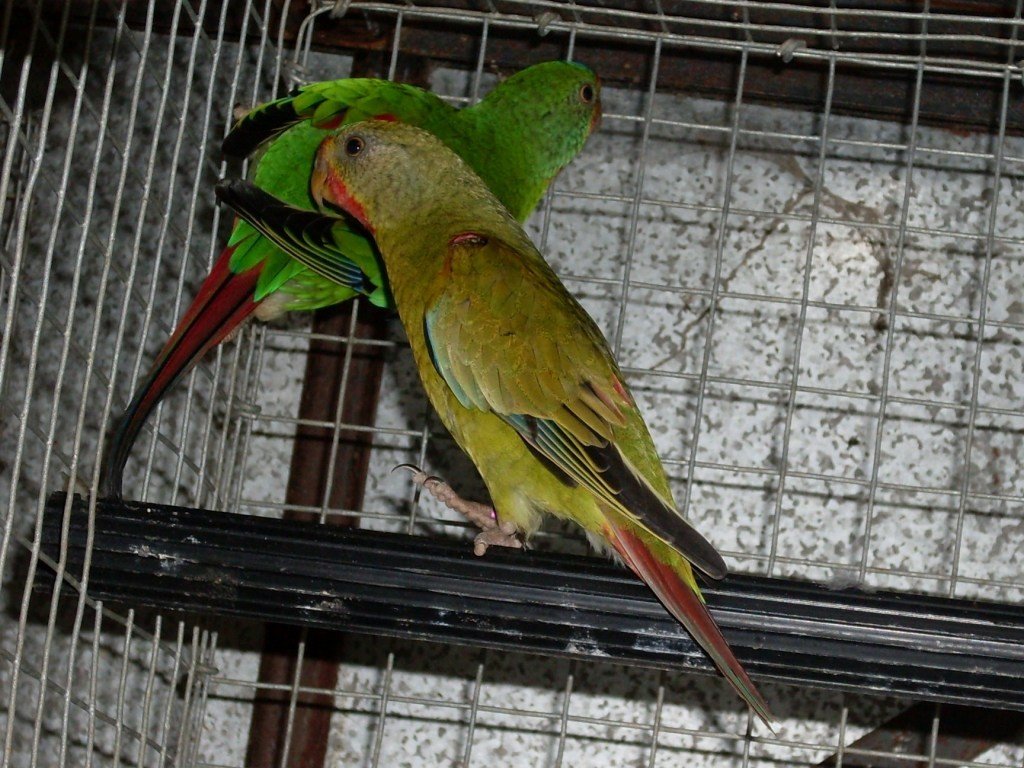 Voliéra pro společný chov má následující rozměry: vnitřním temperovaný prostor 2,5 x 1,5 x 2 m a venkovním výletem 3 x 1,5 x 2 m. V této voliéře jsme měli 3 páry latamů, 3 páry korel, a následující rok také 1 pár pyrurů modravých a 1 pár papoušíčků šedokřídlých. Budky byly umístěné po stěnách jak v záletové části, tak během letní sezóny ve výletech. Bylo jich více než chovaných párů, různých velikostí a tvarů latamové obvykle obsazovaly budky ležaté, rozdělené uvnitř mezistěnou, a také budky poměrně malé vysoké, dříve používané pro neofémy.