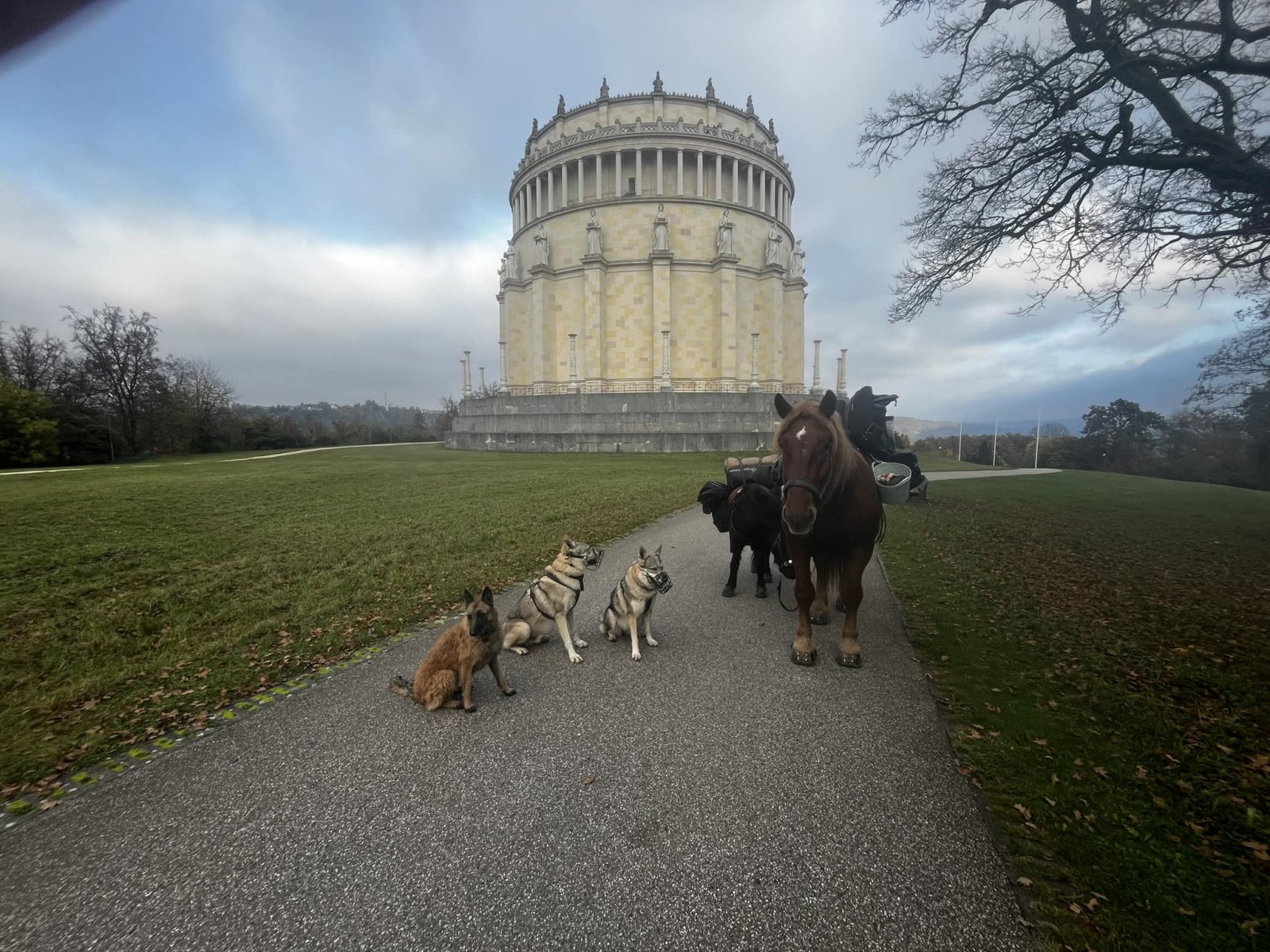 Ptala jsem se Kuby, jak se na celou pouť připravoval – především po vytrvalostní stránce. Odpověděl, že jeho psi jsou zvyklí běžně běhat vedle kola 5x v týdnu 10-15 km. Dokonce i ponyčka Pollinka toto zvládá. A Goliáš si s pochody nedělá žádnou hlavu. Kuba je navíc zvyklý pracovat s koňmi v lese, což je opravdu náročná práce, která vyžaduje maximální soustředění, klidnou povahu a poslušnost koní.