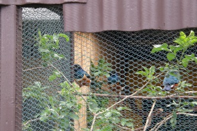 Pohled na velice zdařilé voliéry. V prvních třech voliérách byly leskoptve tříbarvé a jejich odchovy