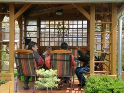 https://www.chovzvirat.cz/clanky/upravit-clanek/152/Následovalo usednutí k bohatému občerstvení, které nám připravila paní domu, a i když si již nemohu přesně vzpomenout, jaký moučník nám paní Nováková ke kávě nabídla, tak jenom vím, že má velice podobný styl pečení, jako já, takže se rychle po skvělém moučníku zaprášilo. Paní Nováková mi prozradila, že má na starost rostlinnou a její manžel zase živočišnou stránku zahrady, pokud si to mohu dovolit takto nazvat. To, že to zvládají oba skvěle je na fotkách jasně zřetelné. A můj obdiv patří jak paní domu za skvělou zahradu, která je opatřena okrasnými jehličnany, keři a travinami, kde nechybí použití přírodních materiálů, jako je kámen, dřevo, což navíc umocňuje tekoucí voda a tůňka s kapry barevnými, tak i majiteli zahrady za kolekci voliér, které pan Vladimír zhotovil. Jedničku mu také dávám za ten gril.