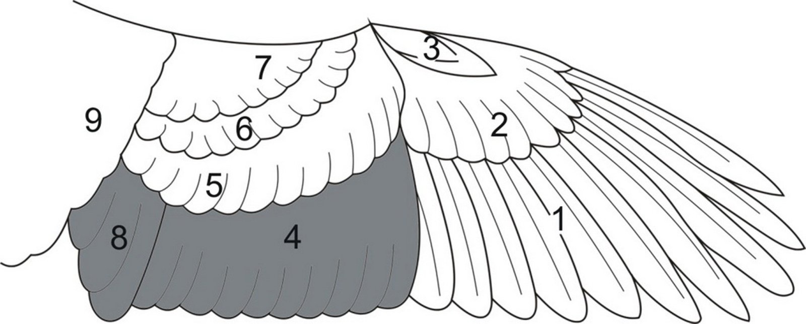 Tak. Jenže na českých obrázcích mají kachny ručních letek deset. Podle Gadowa ovšem jedenáct a jedenáct mají nakresleno i v onom anglickém atlasu, který jsem kdysi výhodně zakoupil. Kdysi mně jeden z předních našich ornitologů poslal obrázek křídla ulovené kachny, které má uložené někde na chatě v jižních Čechách. Podle tohoto obrázku by měla mít česká kachna opravdu 10 ručních letek. Pojmenování ruční a loketní vychází z toho, ke které kosti jsou upnuty svaly, které ovládají křídlo. To podle obrázku dostatečně nepoznáte. Je mně ovšem divné, že v časech, kdy se všechno pečlivě pitvalo a zapisovalo, by se slovutní přírodovědci mýlili. Spíše to vypadá na to, že se v současnosti mnohé zase zapomnělo. Pokud se týká české literatury, potom se dá směle říci, že mnohé bylo jaksi vágně popsáno. Konec konců ona se ornitologie ani na vysoké škole nijak moc neučí, tuším, že pouhé dva semestry. To stačí tak na to, aby si každý zapamatoval, že nejlepší z ptáka jsou prsní svaly a stehýnka. A také je možné, že kachny mohou mít i rozdílný počet letek. Kdo ví?
