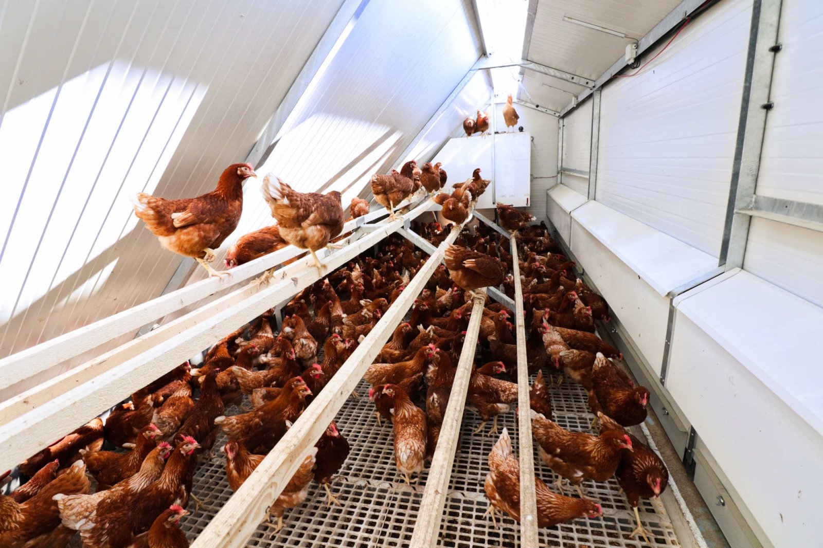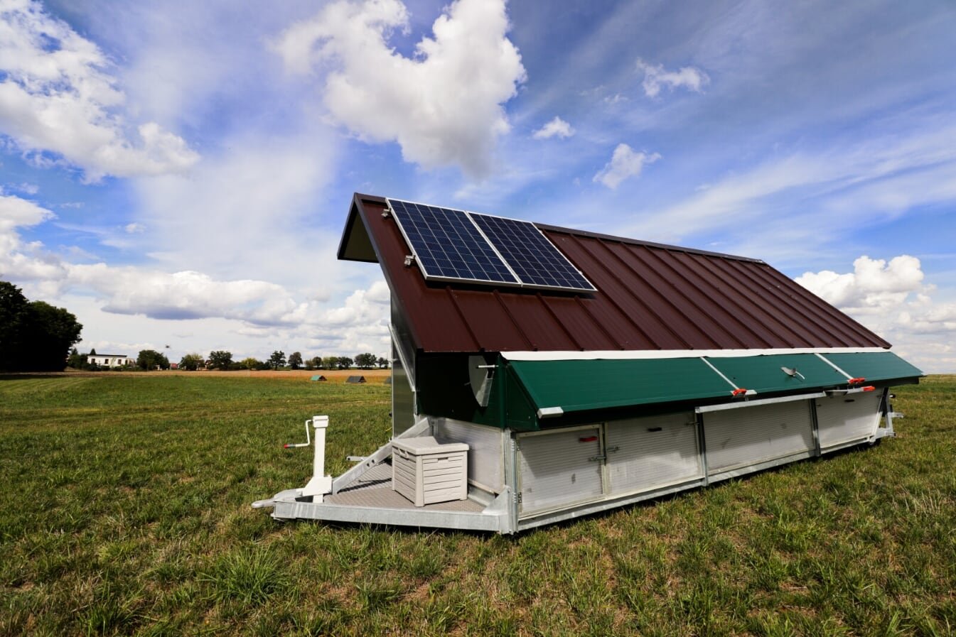 Konstrukce mobilního kurníku stojí na pevném ocelovém rámu a je vybavena izolačními panely. Uvnitř se nachází hnízda s automatickým sběrem vajec, bidýlka, napáječky a krmítka. Součásti je také ventilační systém, který se stará o dostatek čerstvého vzduchu. Dvířka se automaticky otevírají či zavírají podle denního světla, nechybí ani solární panely a baterie pro napájení ventilace a osvětlení, alarmy, elektrický ohradník proti predátorům a vzdálený dohled a dálkové ovládání přes mobilní aplikaci. Ráno se podívám do telefonu a vidím, jestli mají slepice otevřeno, jestli je dost vody i krmiva.