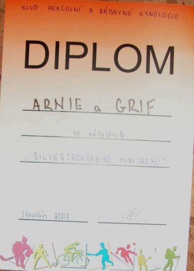 Že je na tom Grif dobře je vidět i na předposledním diplomu, ušel na silvestrovské akci několik kilometrů na "Minitreku".