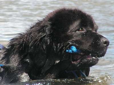 A začali jsme se velmi výrazně věnovat plavání. Nejprve v klubu NF pes, ale tam to bylo o hádkách a pomluvách víc než o plavání, a tak jsem hledal, kde to dělají v Evropě dobře, a našel jsem rakouskou skupinu, která se mimo výcviku vodních prací a záchrany věnovala také kondičnímu plavání. První rok jsme se zkušebně zúčastnili několika jednodenních plavání na Dunaji ve Vídni a velmi se nám to zalíbilo. Mě hned, Grifovi postupně, nejdřív si musel plavání zamilovat. Rakouská skupina HWR cvičí podle IRO, tedy mnoho cviků a nikdy se nenudíme, fundlák má rád rozmanité cviky a znáte to, je to krásný pocit, když pes zvládne cvik o kterém jste ani nedoufali, že ho někdy bude umět.