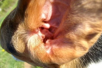 Zejména u loveckých psů a psů přicházejících do užšího styku s kočkami se můžeme setkat s ušním svrabem, který je způsoben parazitickým roztočem. Je nutno přeléčit veškerá zvířata v domácnosti, na které je svrab přenosný.
