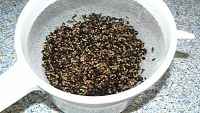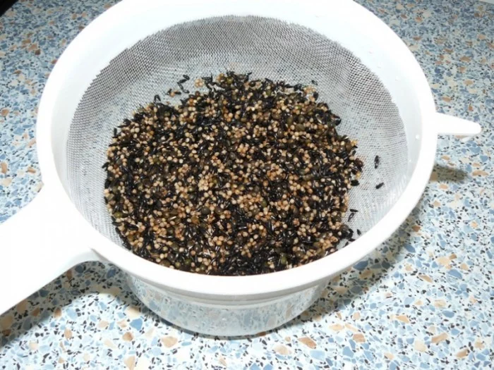 Tedy 6-12 hodin máčená semena se důkladně propláchnou, nasypou se do cedníku a ten se umístí na hrnek, na jehož dně je trochu vody, ale té se cedník nesmí dotýkat. Od spodu tedy může působit pouze vzdušná vlhkost. Po 12 hodinách (případně dříve) se zrní znovu propláchne. Podle druhu semen a podle teploty v místnosti se po 24 až 48 hodinách objeví klíčky. Drobnochovatel pro svoji potřebu vystačí se třemi až čtyřmi cedníky ke krytí potřeby svých chovanců. Takto získané naklíčené zrní se dává ptákům do klece na miskách jen v nízkých vrstvách.