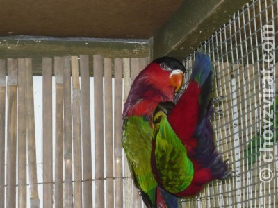 Lorie chovám v úplně stejném zařízení jako australské zrnožravé papoušky, jediným rozdílem je hoblinová podestýlka, která se mi osvědčila ze všeho nejvíce. Mimochodem zkoušel jsem i vykachlíkované voliéry, které na mě však působily jednak neesteticky a jednak celkem náročně na údržbu. Nemluvě o tom, jak se asi ptáci v takovém prostředí cítí. Stručně řečeno lorie chovám ve voliérách o velikosti 2 x 0,8 x 1,8 m (dšv) se dřevěnou konstrukcí, ve voliérách udržuji cca 85% vlhkost a konstantní teplotu 25°C. Loriové by měli mít k dispozici také budku na nocování.