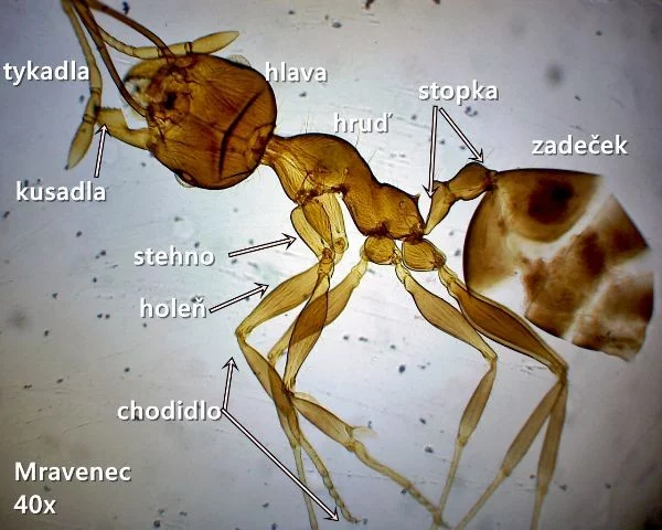Mravenec pod mikroskopem