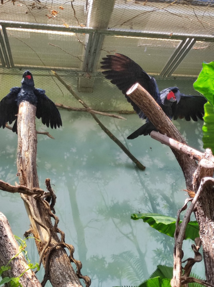 Nížinný les Nové Guineje – podle mnohých nejkrásnější expozice v Rákosově pavilonu. Pro návštěvníky je průchozí a rostou v ní banánovníky, orchideje nebo parožnatky. Naprosto ikonickým papouščím druhem tohoto biotopu je největší kakadu světa kakadu palmový. V pražských podmínkách se mu nebývale daří a od roku 1995, kdy s chovem tohoto papouška začali, se podařilo odchovat několik mláďat. Asi největšího úspěchu dosáhla Praha v roce 2017, kdy se podařilo odchovat zkušenému páru samičku. Jednalo se o první československý přirozený odchov v historii! Navíc týž rok šlo o jediné odchované mládě v rámci všech evropských zahrad.