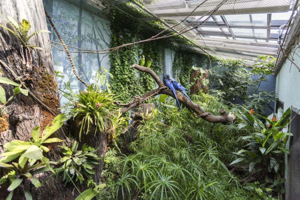 Pavilon je rozdělen na osm rozlišných biotopů, ve kterých žije téměř čtyřicet vzácných druhů ptáků. Papoušci jsou zde zastoupeni osmnácti druhy. Nyní se podíváme na každý z osmi biotopů více z blízka.