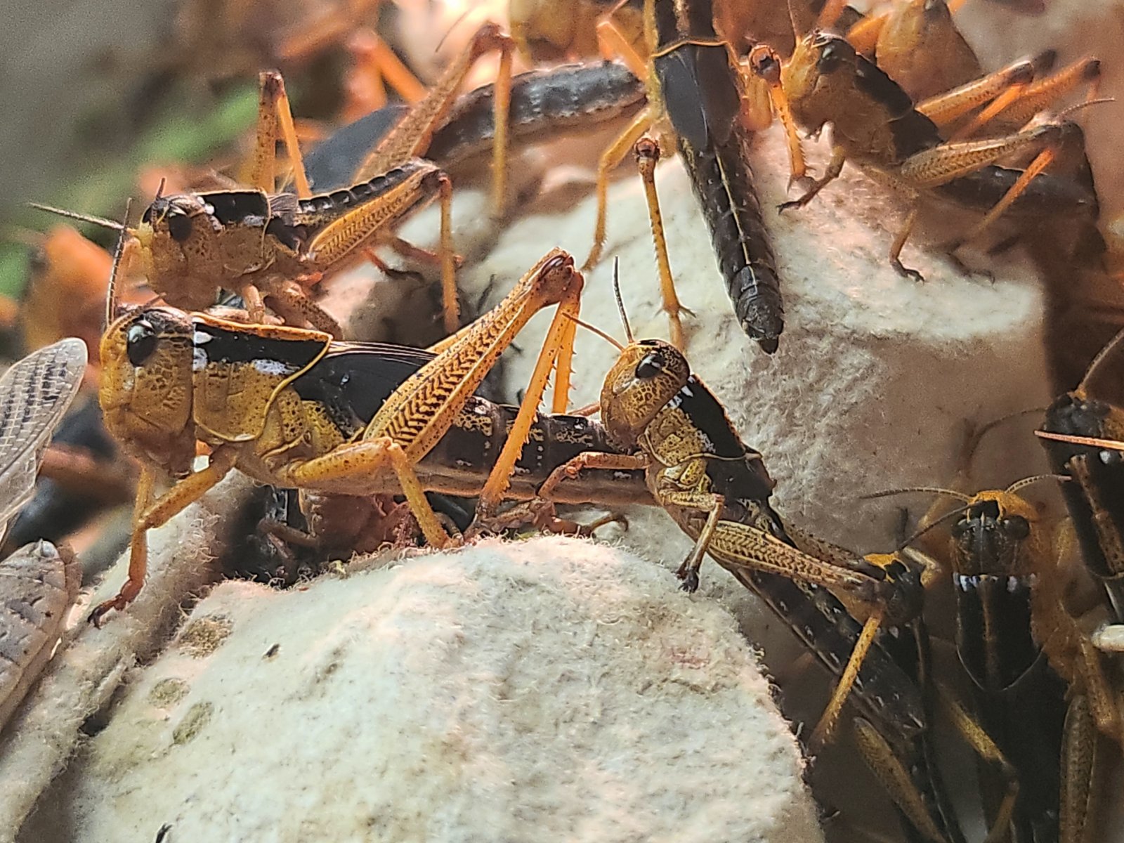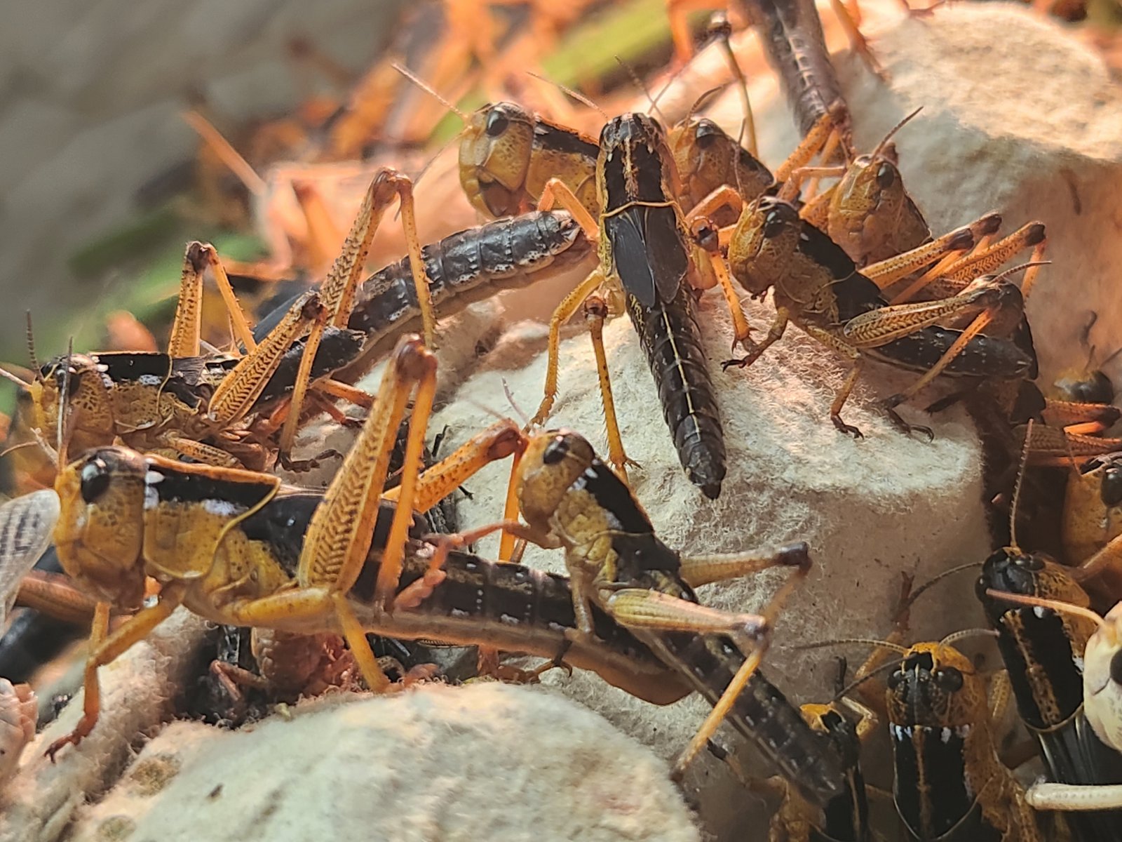 4. malá sarančata cca 1,5 cm - do této fáze se saranče dostane po zhruba týdnu svého života. Takto malá sarančata jsou ideální pro mláďata např. agam, chameleonů a dalších. První svlek je velice rychlý a jejich pohyblivost se po něm dostavuje prakticky ihned.