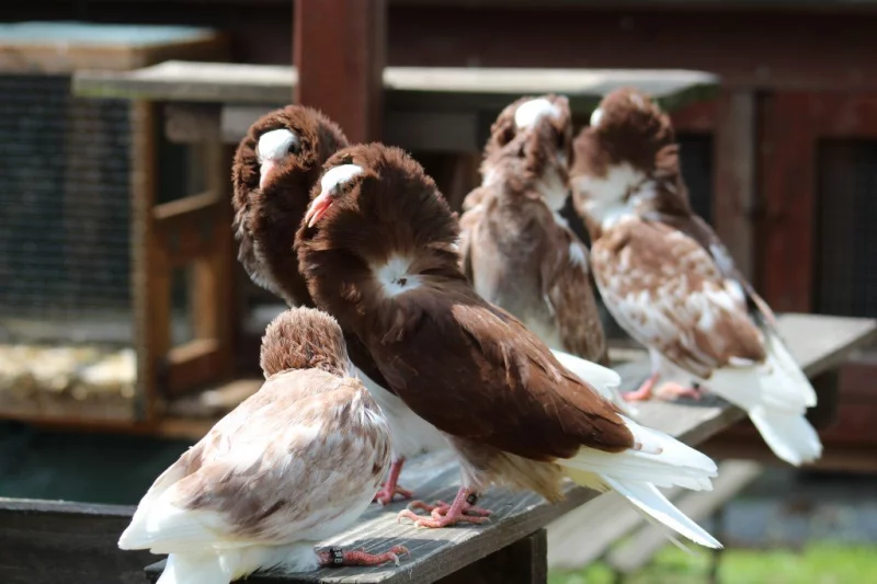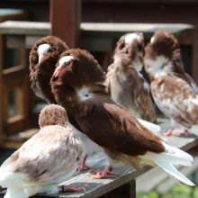 Nejprve jsem pro parukáře vyčlenil jednu samostatnou voliéru a přizpůsobil interiér tomuto plemeni. Zmenšil se počet sedaček, které jsem odsadil dál od sebe, aby si holubi nedeformovali paruky. Hřady se mi úplně neosvědčili, jelikož zabíraly poměrně dost místa, dominantní holubi si je obsazovali celé a ostatní tam nepouštěli. Klasické stříškové sedačky ukázaly se jako dostačující.