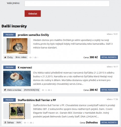 Změnili jsme uspořádání detailu inzerátu. Nyní naleznete nad inzerátem tlačítko zpět na seznam inzerátů a změnu velikosti písma. Původní záhlaví jsme přesunuli až pod inzerát - obrázek 1