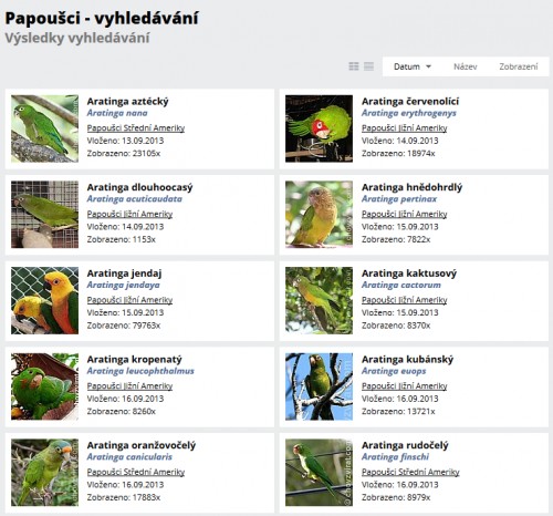 2) Když místo na konkrétní zvíře kliknete na lupu vpravo ve vyhledávači, zobrazí se klasické výsledky vyhledávání. Nyní jsou ale tyto výsledky vybrány pouze z aktuální zvířecí sekce - obrázek 2.