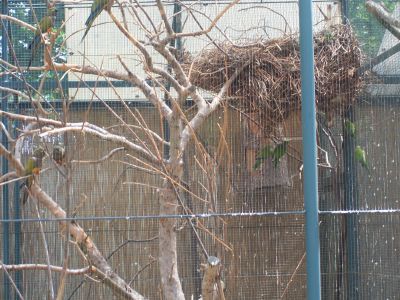 Přikládám fotku ze ZOO v Hluboké. Společná voliéra pro patagonce a mníšky. To byla taky paráda, jak byli všichni v pohybu a stavěli hnízdo anebo přelétávali z místa na místo. Patagonce jsem ale u hnízd neviděl, že by mníšky respektovali?