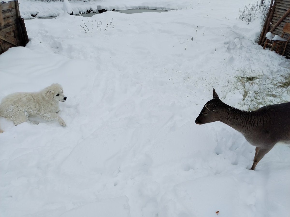 Tak u nás už je 45 cm a pořád to padá. Prý až 65 cm. Kdybych dneska nemusela do práce, tak by mi to nevadilo. Hned ráno jsem při odhazování sněhu zjistila, že kotníkové boty jsou naprd. Vyndala jsem vysoké s kožichem. A vzala si čepici, šálu a dokonce rukavice. Tyhle věci do auta a práce normálně nenosím. Cestu jsem přežila a modlila se, že ty kolíky kolem silnice je krajnice, protože silnice splynula s okolím. Teď ještě přežít cestu domů. A hurá na zvířectvo. A když nikam nemusíte raději nevyjíždějte…. Doufám že do pondělí to silničáři dají trochu do kupy. Protože mě pracovně zase čeká cestování po okrese.