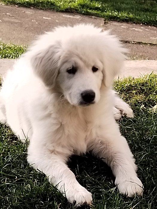 Dnes jsme byli ve městě. Fotka je ze zahrady u babičky. Kouká unaveně. Trochu se prošla, pár lidí si jí i pohladilo. A ptali se, jestli je to zlatý retvívr. No nadšená jako v lese, na louce nebo na pastvině nebyla. Tak musíme trénovat město daleko častěji.