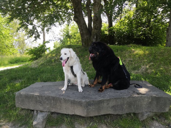 Hlásím, že my dnes poprvé od operace packy vyrazili společně na procházku. Bylo beztak moc horko, jít někam daleko, tak jsme šli se všemi dokupy. Bylo to prima, už mi chybělo, chodit s oběma kluky dohromady, i když je to větší pohoda, mít jen jednoho tibeta v ruce 😄