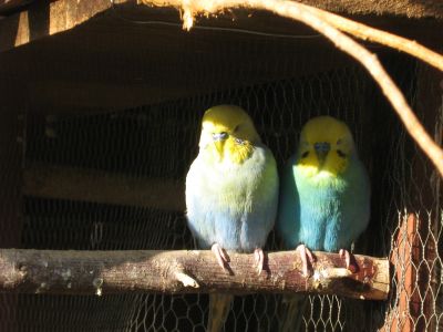 Peťula24.05.2010, 18:49:57xxx.xxx.6.82Pro zadavatelku ještě přikládám fotky páru modrých žlutohlavých perlových, bývají větší, pěkné v postavách, mláďata duhovek i perel jsou krásně modrá, duhovky začnou měnit vzhled až po půl roce, už proto málokterý chovatel prodává opravdu mláďata, neboť neví, jak budou vypadat. Snažte se zaměřit na křídla, pokud jsou jednotlivá peříčka uvnitř světlá a mají tmavé okraje, jde o perlové, pokud je to obráceně, tmavší střed pírek a světlé lemování, jde o duhovku.