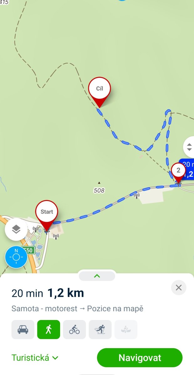 1. Vyberu si místo, odkud chci vystartovat a kliknu na něj. Nějaký bod, rozcestník.