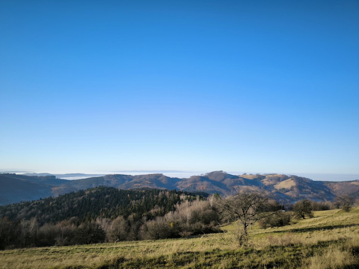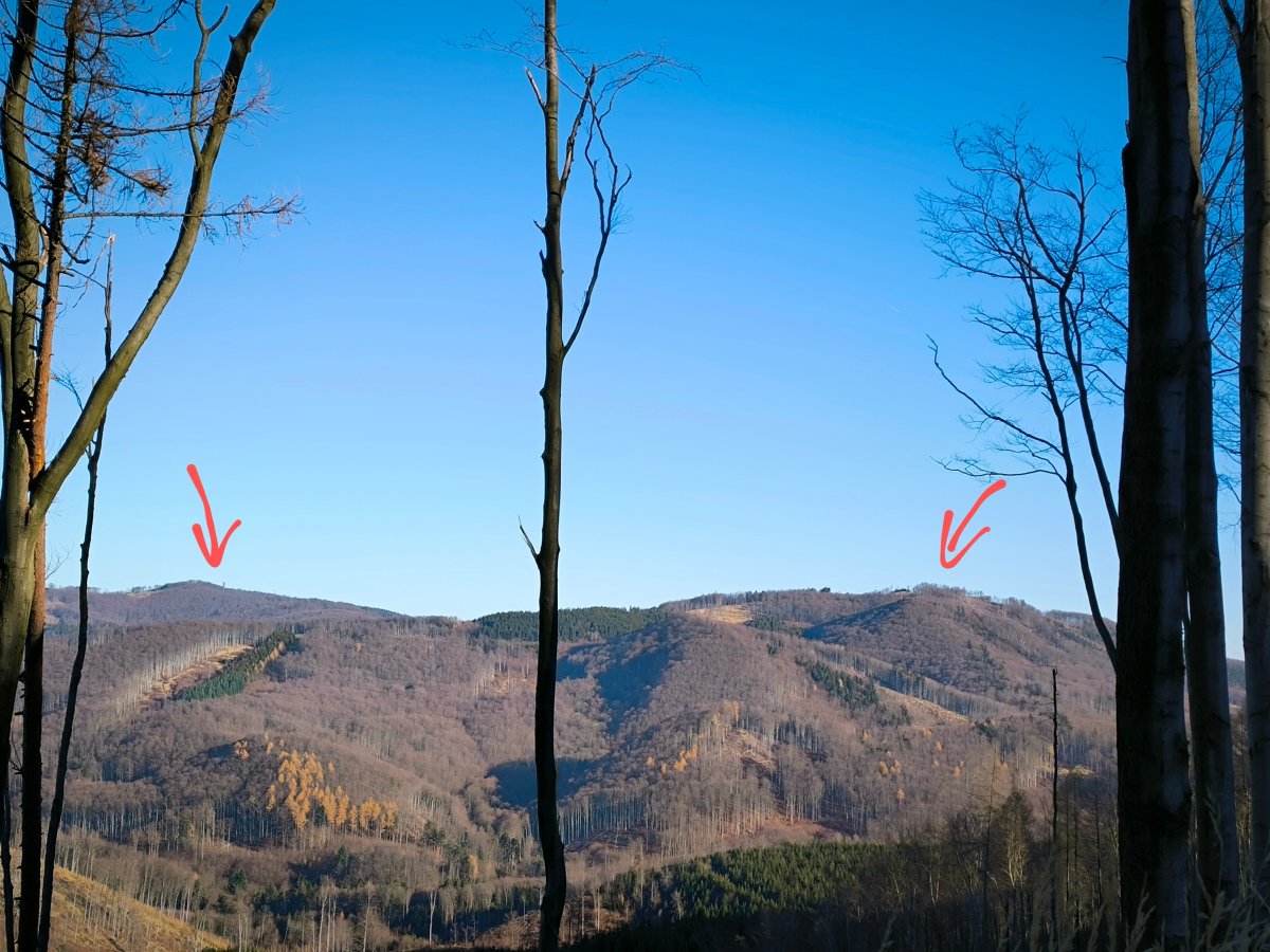 Přes tenhle horizont jsme šli posledně na Kelčský Javorník. Vpravo je krpál na Čerňavu, kde jsem málem chcípla. A když jsem přešla kopec, tak jsem zjistila, že na Kelčák lezeme dole hore na další krpál. 😂