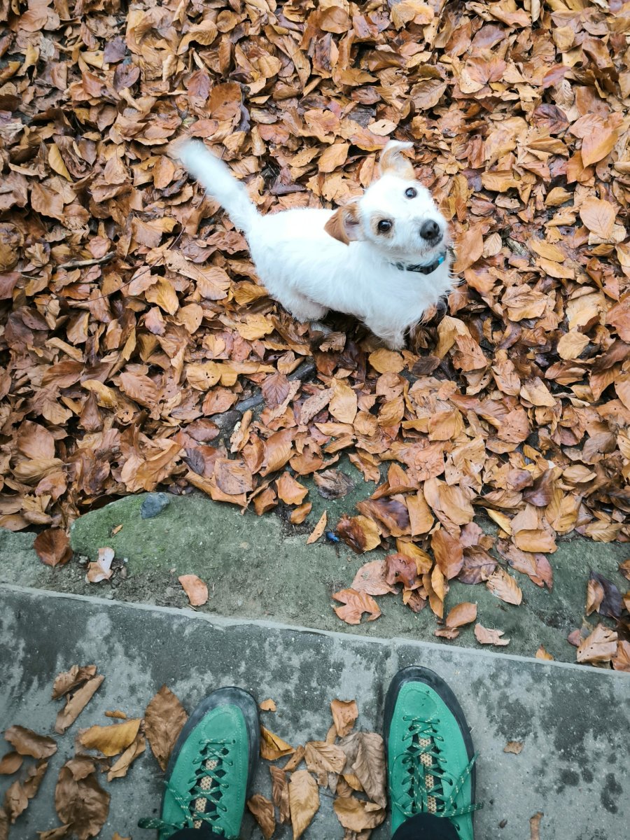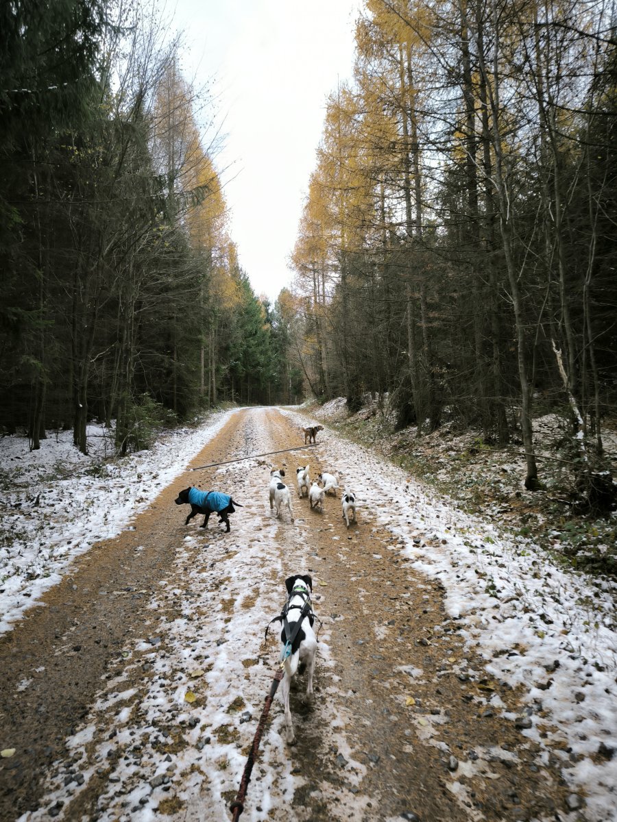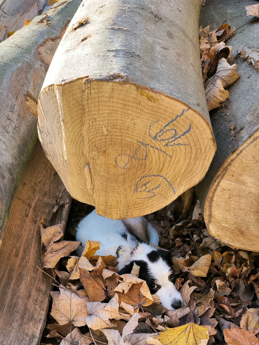 Nejlepší byla Merina někde na desátém jedenáctém kilometru. Dala jsem si čaj a pauzu a ona zalezla pod dřevo, udělala si pelech v listí a oznámila nám, že jsme dementi a už nikdy s náma nikam nejde. 😂😂😂
