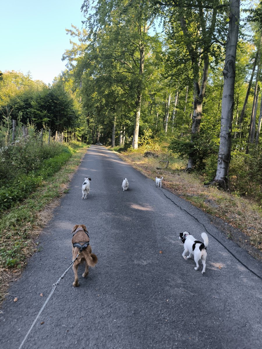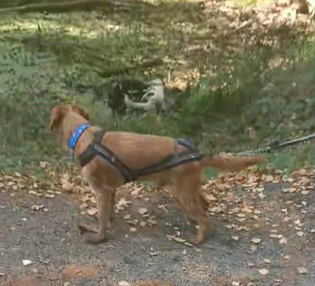 Tak to nakonec dopadlo nad očekávání dobře. Kevin tahal jak kůň a vůbec nesípal. Navíc mi přijde, že tahal i ochotněji. Trochu mi ten postroj na něj připadal delší, ale dívala jsem se na fotky majitelů na stránce MushGo a mají ho všichni až tak k ocasu. Tak snad to bude cajk. 🤩