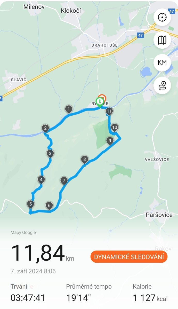 Jinak my dneska super dvanáctka okolo Maleníku. Vedro bylo strašný, fakt. Fuj bek bek. 😏