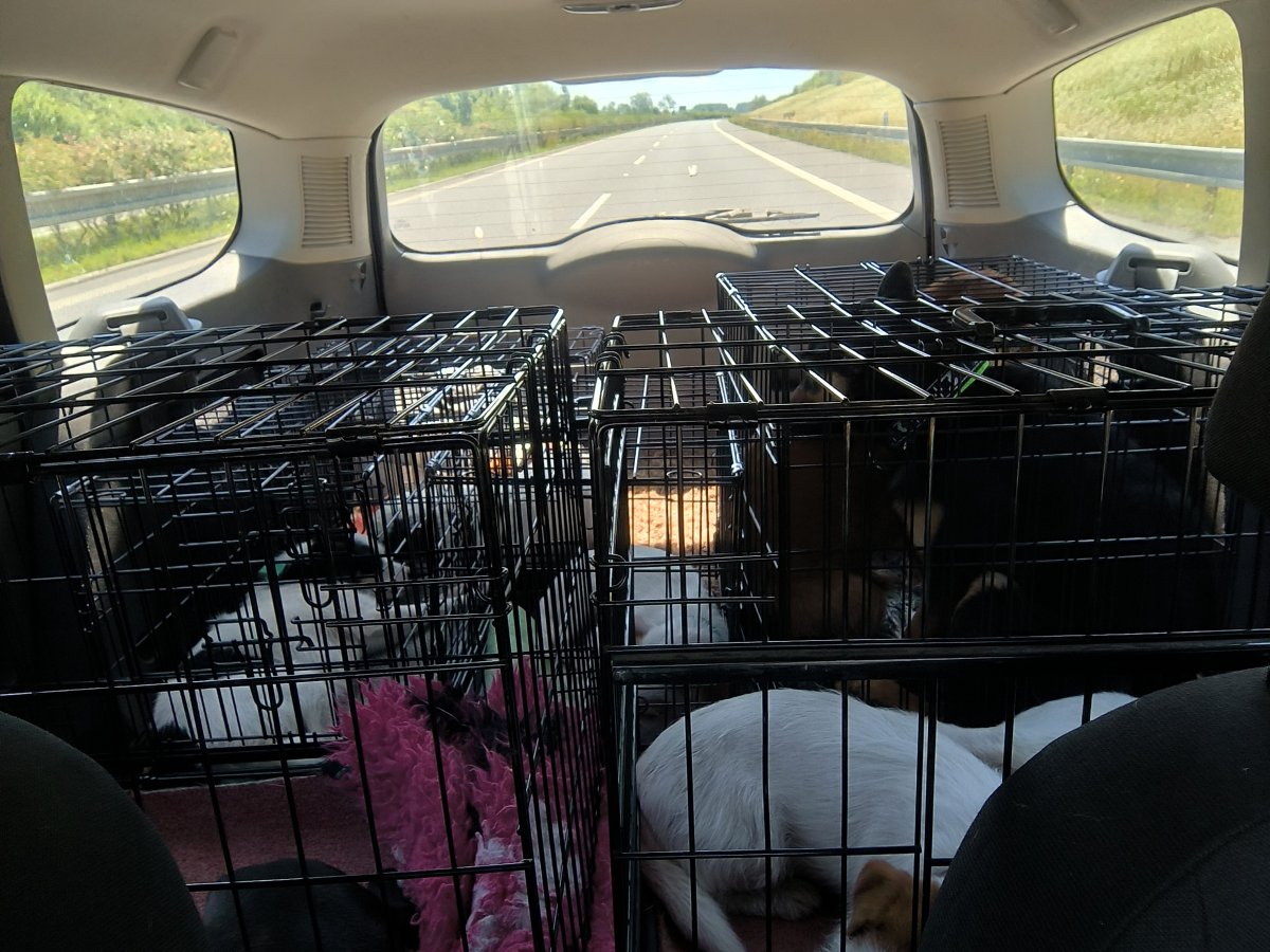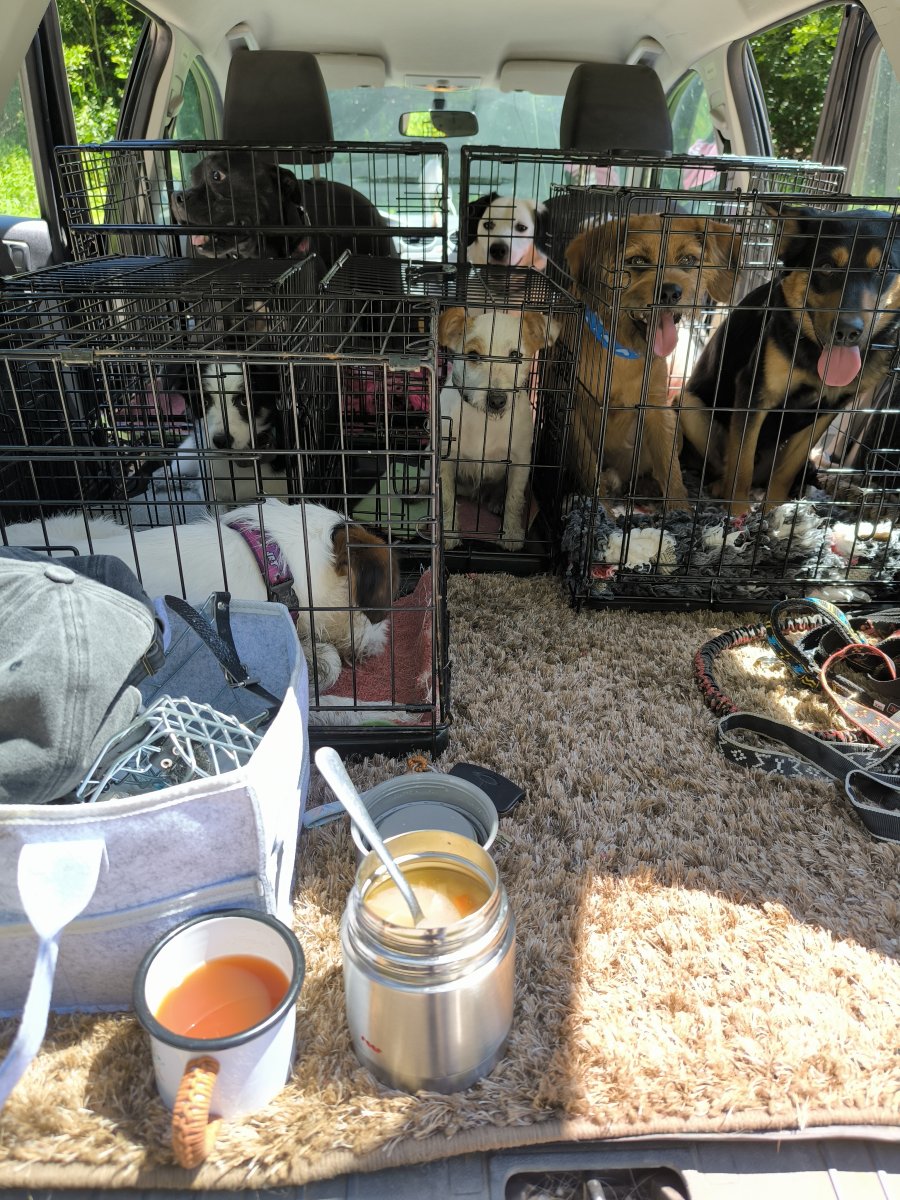 Ráno vstávačka, po sedmé naházet psy do auta a hurá na výlet. Fikaně jsem předtím vyhodila Maffinu s BJem a Merlinem na dvůr, takže vůbec netušili, že se balím a nestihli během těch pět vteřin, než jsem je namrskala do auta, vzbudit půl ulice. 😠