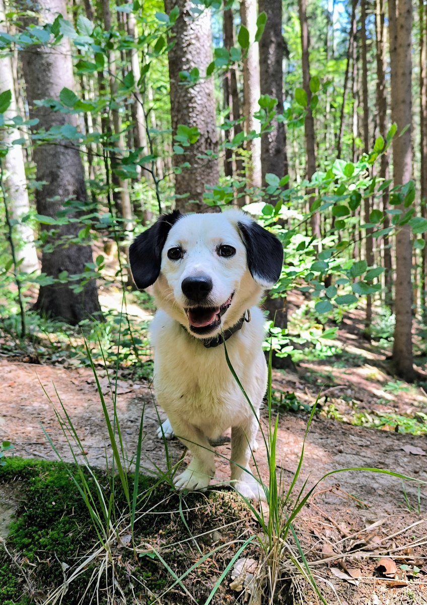 Po příjezdu na parkoviště stačilo fofrem vyházet psy z auta a vyrazit. Ze začátku jsme potkali nějaký houbaře, ale hlouběji v lese už pomalu ani noha. Boží to bylo. Krásná třináctka, perfektní počasí a psi, když se neměli před kým předvádět, úplně na pohodu. 😛