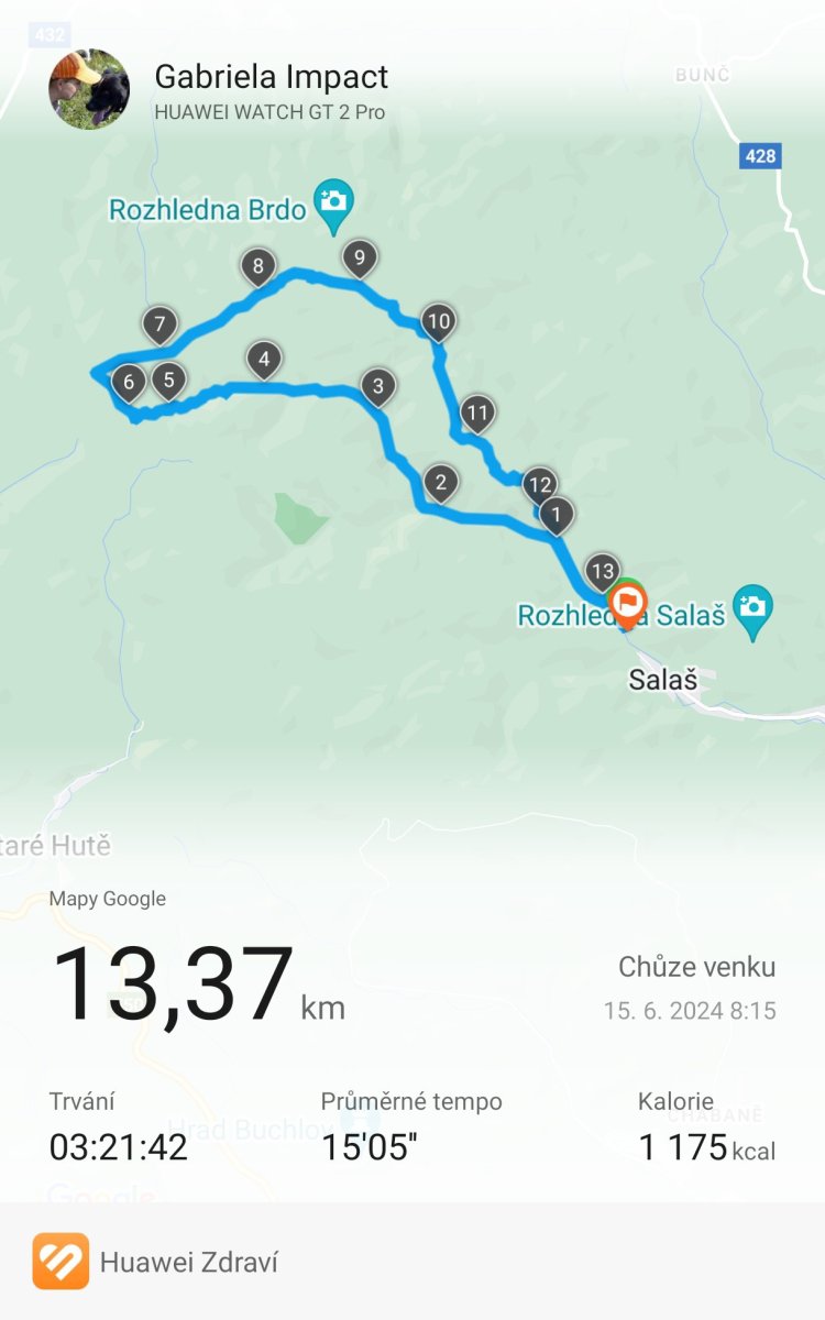 Impact, já se zeptám, co je to za aplikaci v telefonu co máte? To je bezva, už jsem se chtěla zeptat dříve, tam se vlastně zobrazí kudy jste šli, kolik km a tak.