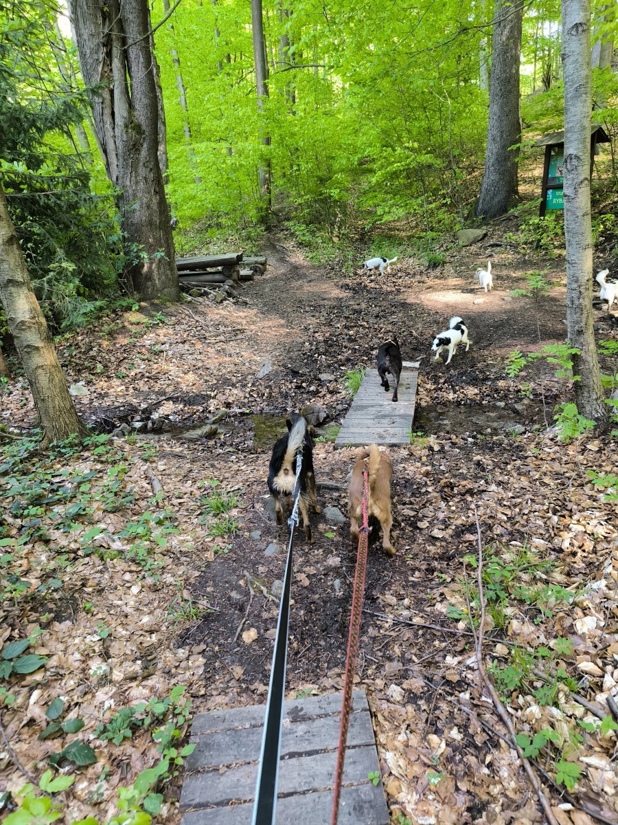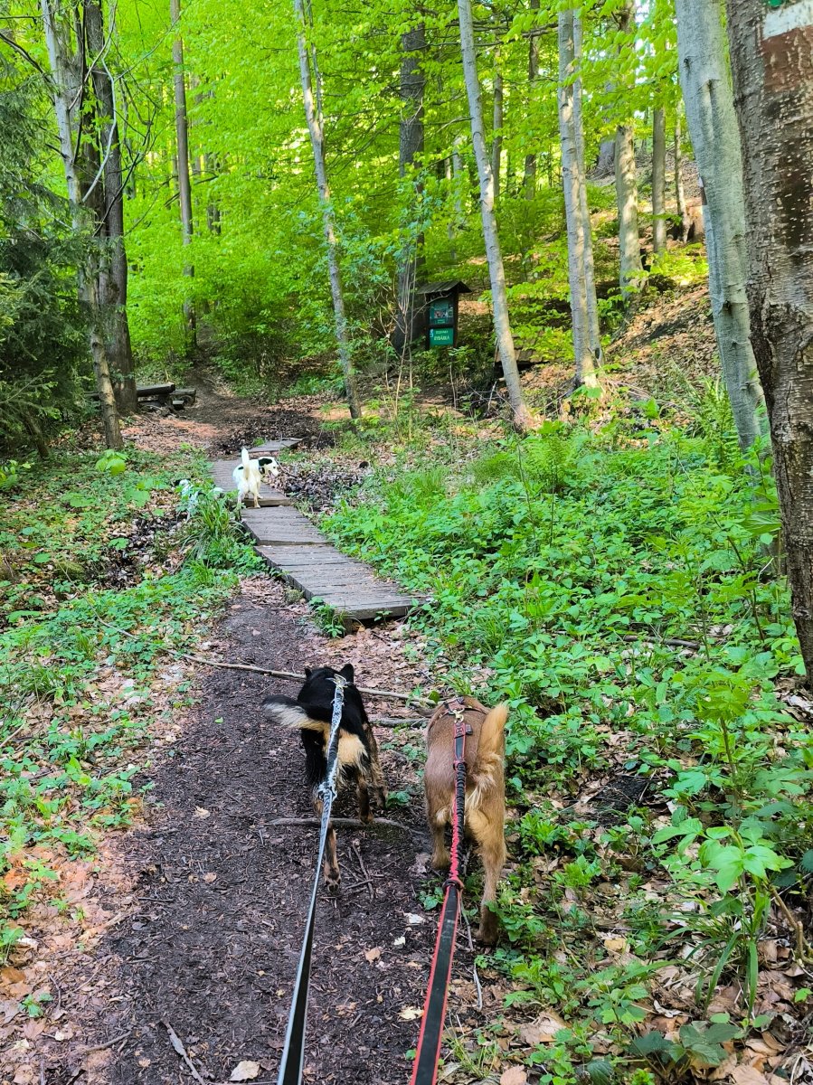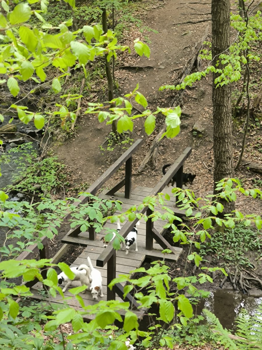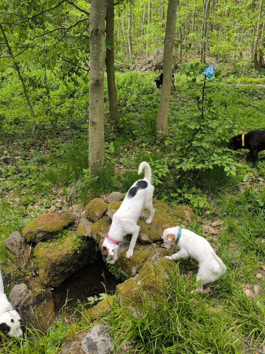 Ohromě mě dneska pobavilo, jak už to tam znají i psi. Jak bezpečně v porostu trefí ke každé studánce a dokonce si sami seběhli i k mostku. 🤭