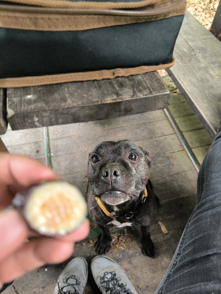 Xerxova:jinak dnešní venčení bylo s překvapením - vyrazili jsme brzičko, než začne pršet… a uprostřed procházkové cesty k lomu najednou hromady navezeného perku, a úderem sedmé ráno najednou všude chlapi v pláštěnkách - a nakladač a náklaďák a bagřík a dvě “dusadla” a Yoda nevěděl, co na to říct. Duc, duc… ze všech stran… Byl velmi vzorný a dělal vše proto, abychom šli nejkratší cestou pryč.