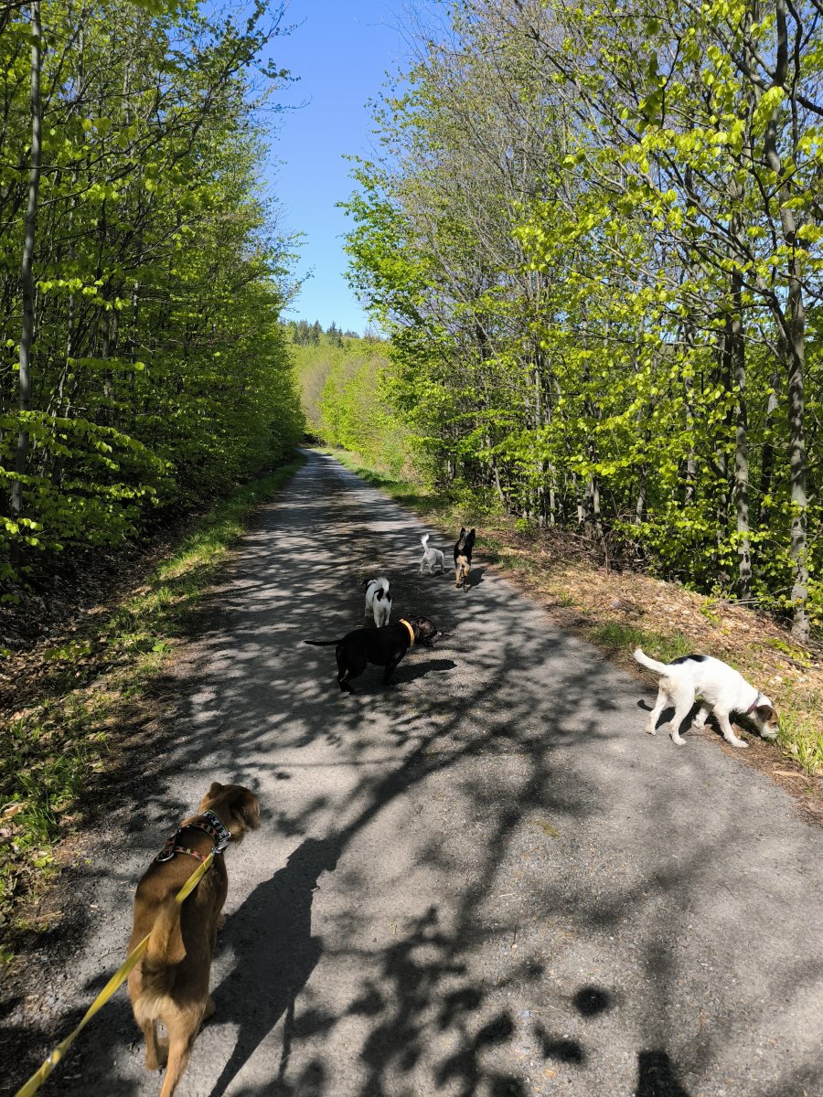 No právě, že by s náma mohla klidně jít. Naši psi jsou socializovaní a je jim jedno, kdo s nima jde. Ale bohužel teda, z opačné strany republiky.