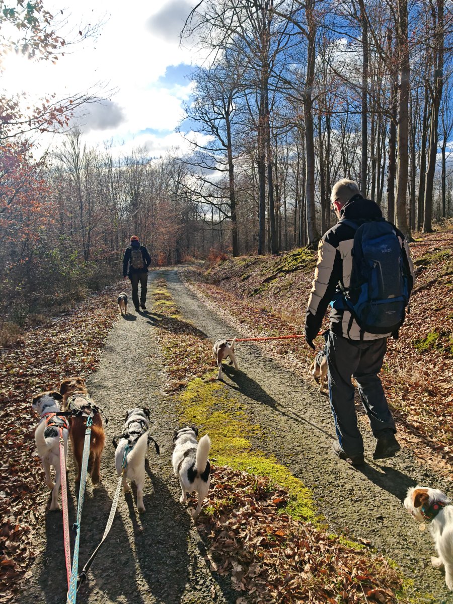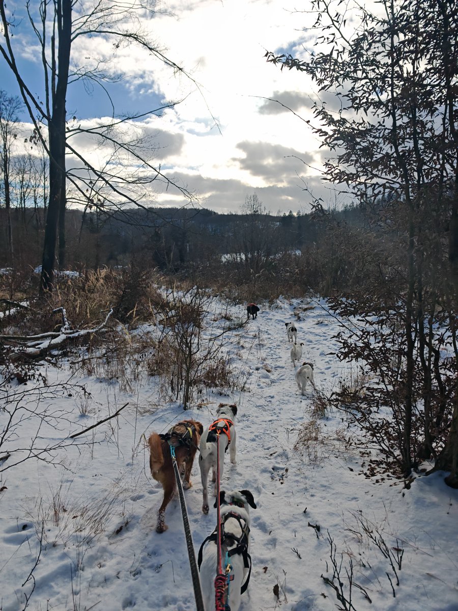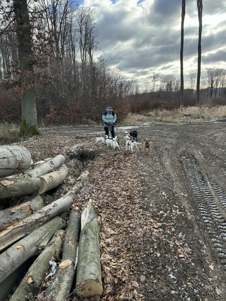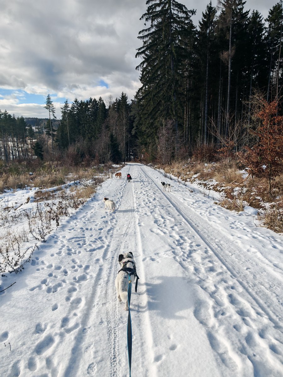 Bylo ohlášeno víc lidí, ale nemoce a zaspání udělalo svoje a tak jsem šla nakonec ve vybrané chlapské společnosti a celkem v deseti psech. Patnáct kiláčků jak nic. 🥾🐾