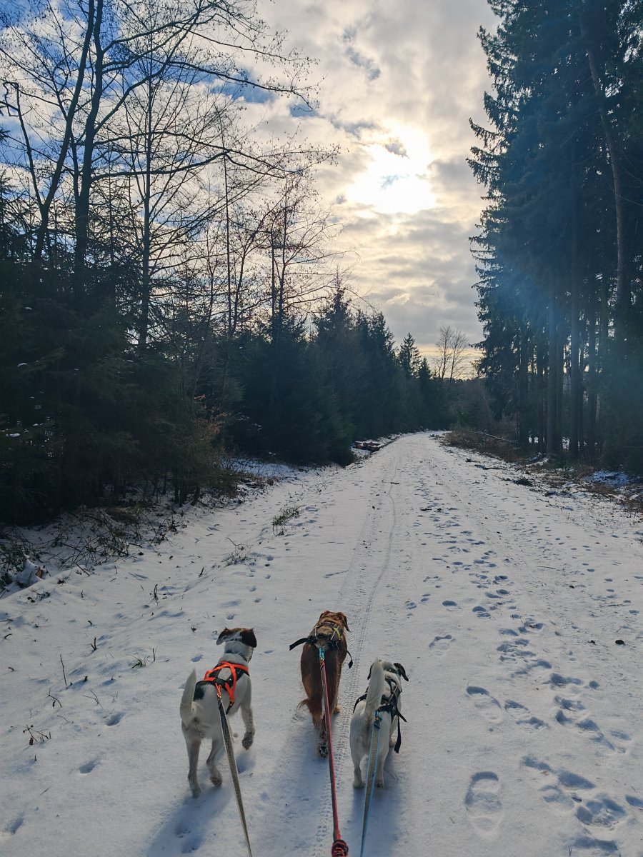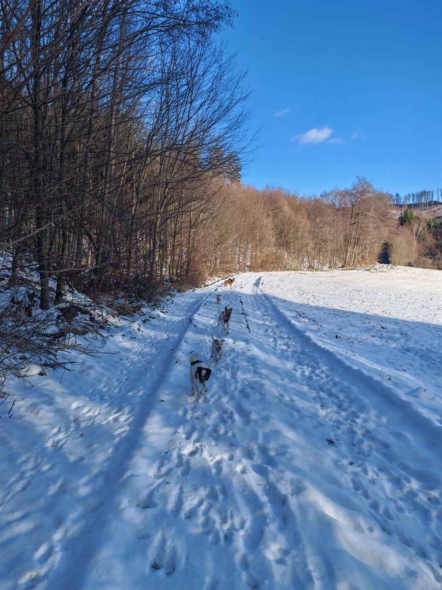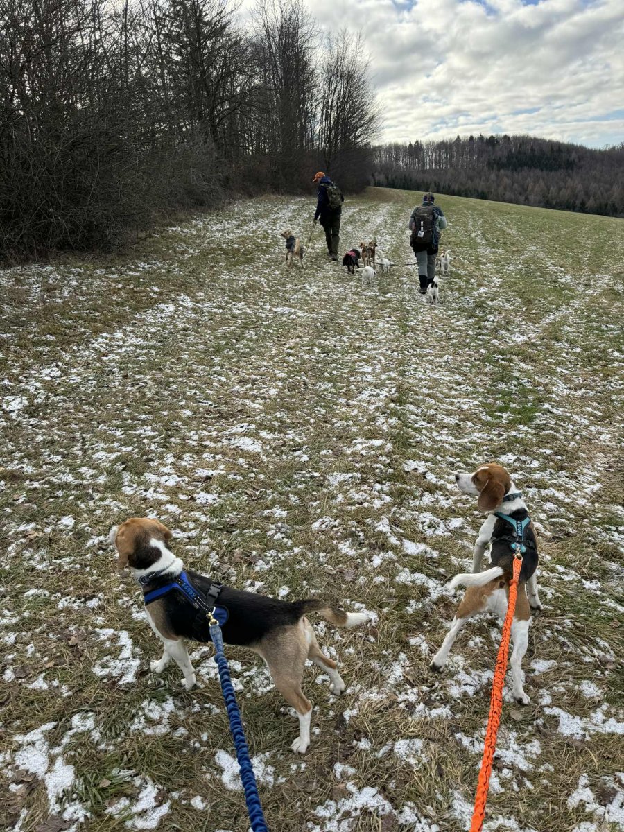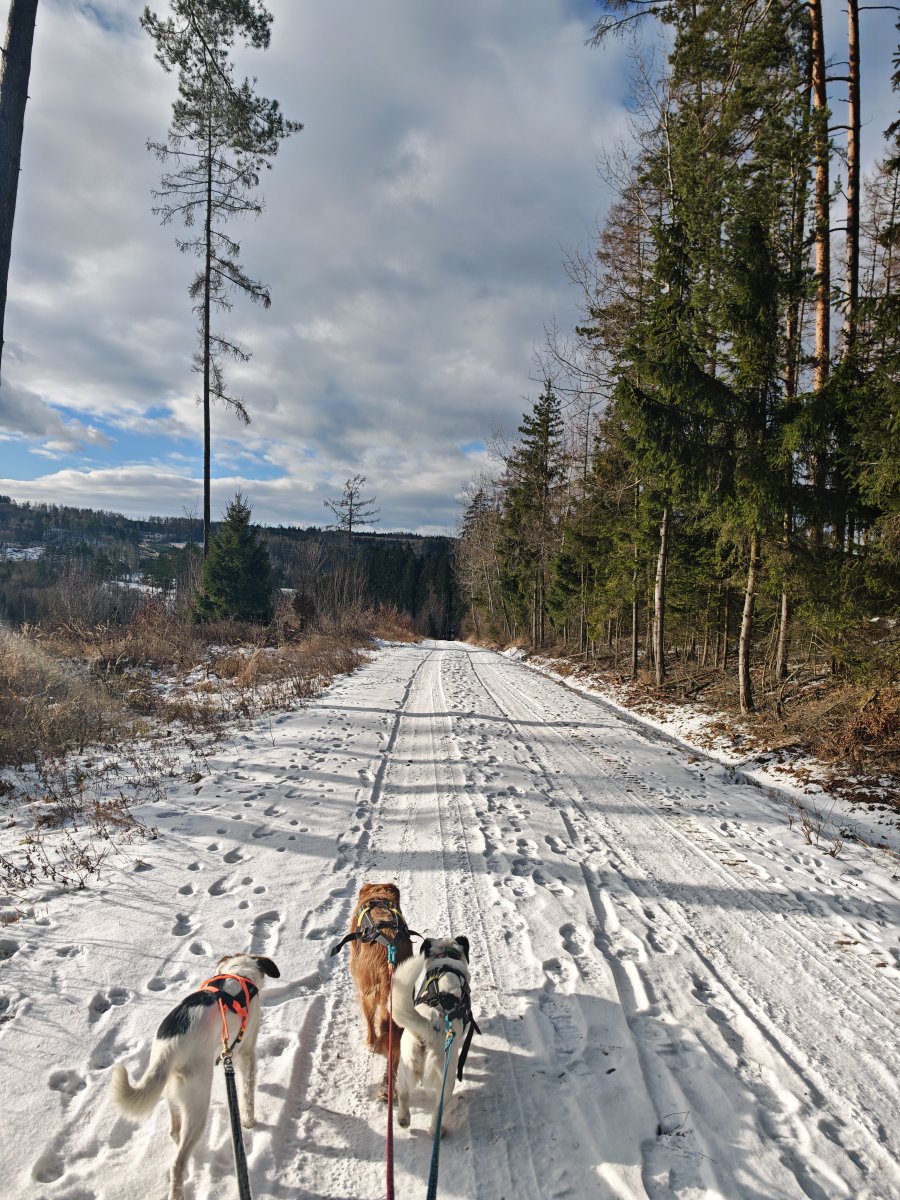 Bylo ohlášeno víc lidí, ale nemoce a zaspání udělalo svoje a tak jsem šla nakonec ve vybrané chlapské společnosti a celkem v deseti psech. Patnáct kiláčků jak nic. 🥾🐾