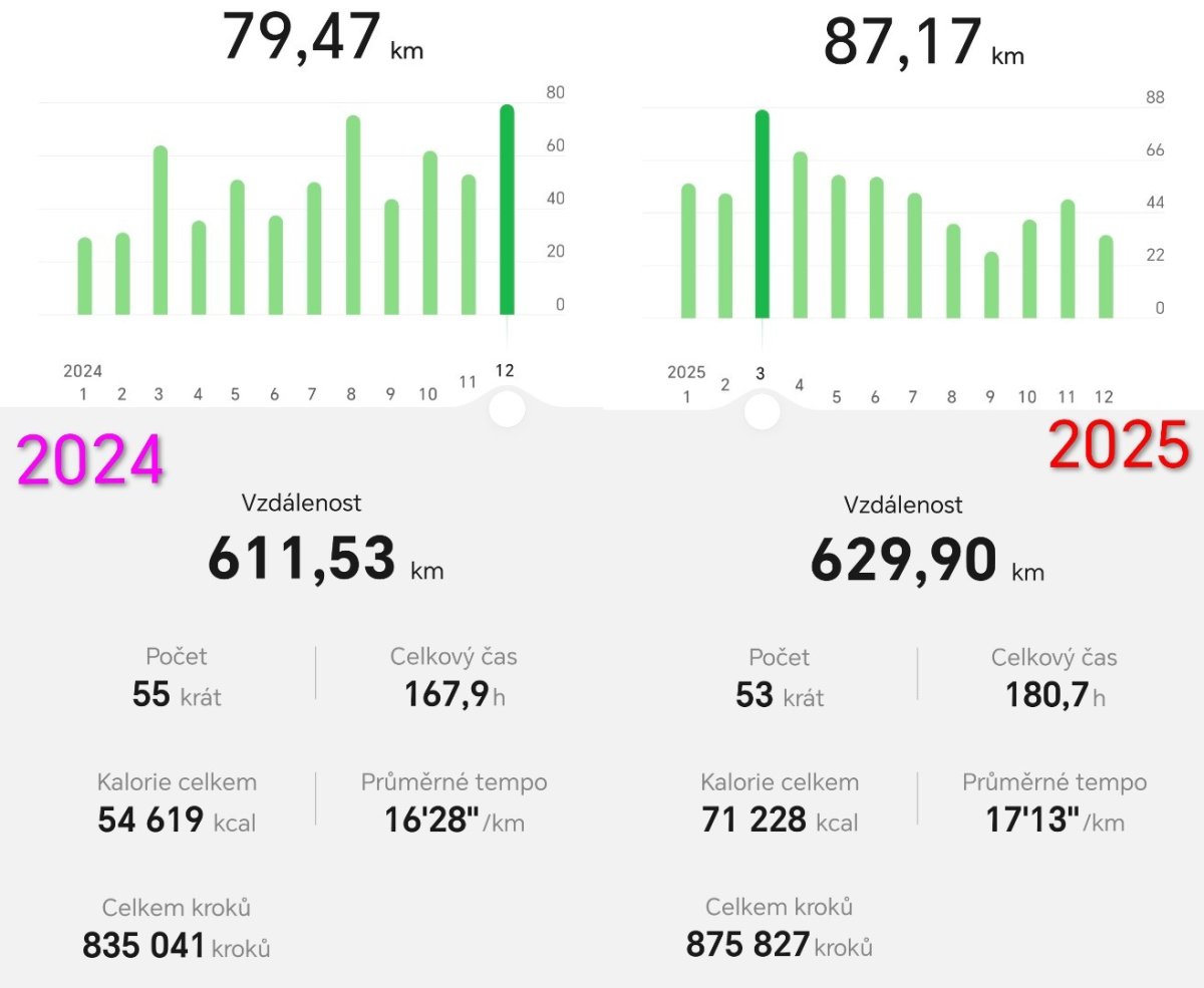 Rozhodně mám v plánu co nejdříve překonat tu dvacku, taky zase na narozeniny vylézt svítání nebo západ slunce na Kelčáku, dále překonat nejvyšší počet km v jednom měsíci (79 km v 12/2024 a 87 km v 03/2025) a rozhodně strávit maximální počet víkendů na Bezkempech a spaním v autě. Tak uvidíme, co se podaří. 😃