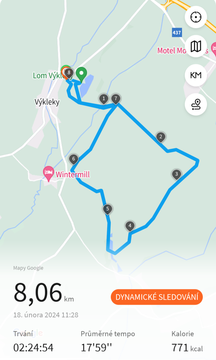 Takže dneska hezká osmička kolem lomu Výkleky. Původně jsme měli v plánu víc, ale já si dala ráno ještě dvě schůzky se zájemci na adopci a tak jsem prochajdu pak trochu zkrátila. 🤭