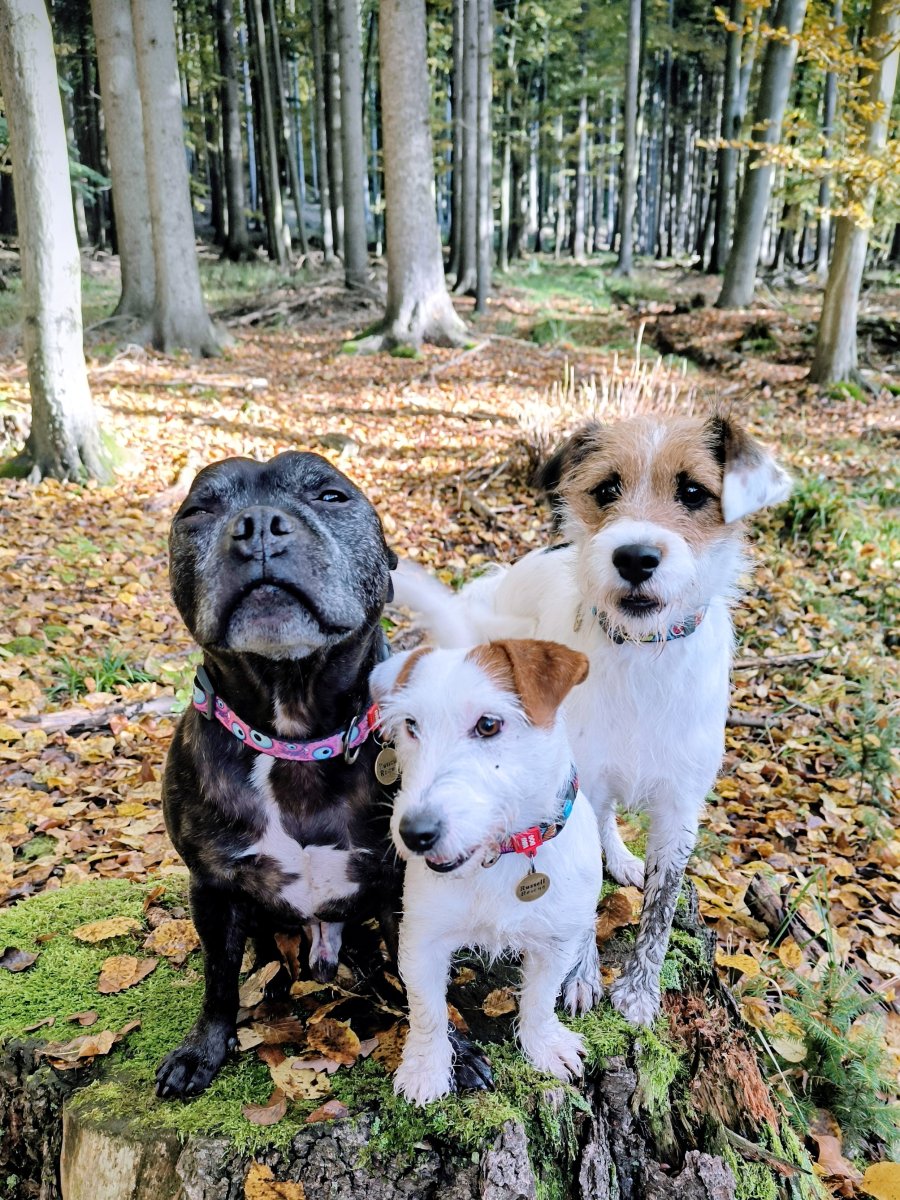Na Klášťově jsme si dali snídani a já se pokusila všechny vyfotit. Už jsem je málem měla všechny, až na malého BJe. Hukla jsem na něj SEDNI, což se obratem vrátilo ozvěnou z lesa. Což psi vůbec nepochopili a v jednom šiku se s řevem vydali ozvěnu zabít. 😂