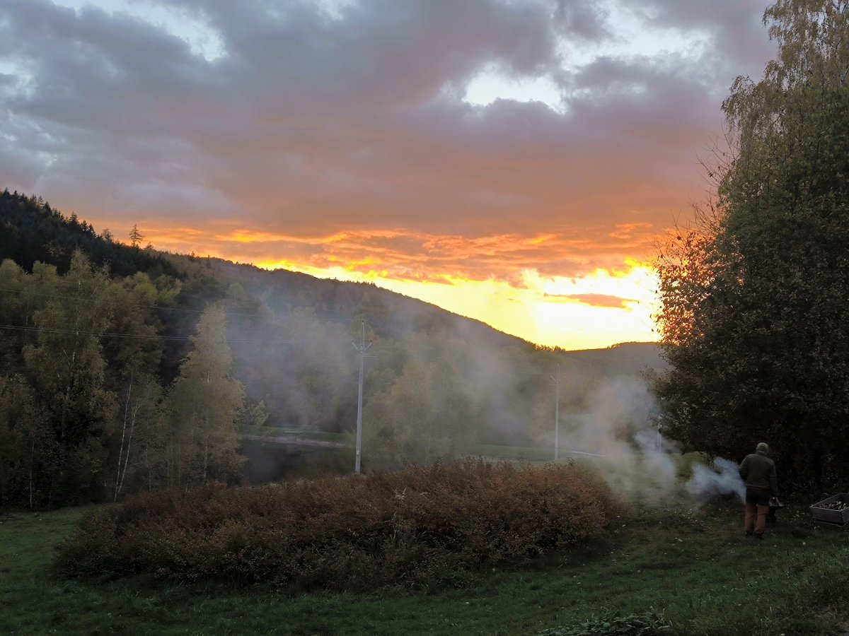 Neee, okolnosti k dřívějšímu návratu bylo jednak počasí - do srubu se jelo po louce a lesem a já se bála, že to pak po pondělním celonočním dešti nevyjedu. Minulý víkend jsem totiž tahala kámoše zapadnutýho na louce a tak strašně to klouzalo na mokré trávě, že jsem se viděla pod kopcem v přehradě. A od té doby se trochu po trávě bojim. 😑 A pak taky srub nešel moc vytopit (blbý kamna), takže mi v noci psi drkotali klecema. 😂 A co mě dorazilo, to byly myšince všude. Jako já se myší nebojím, ale že bych musela mít bobky v posteli, na gauči i na lince, to fakt neee. 😔 Hrozně blbě se mi tam spalo. No spíš jsem nespala a ve tři ráno už jsem rovnou vstala a uvařila si kafe. A bylo rozhodnuto, že tam další noc nestrávíme… Srub pěknej, ale mohli by tomu věnovat větší péči, když už tam stojí noc 600. 😏